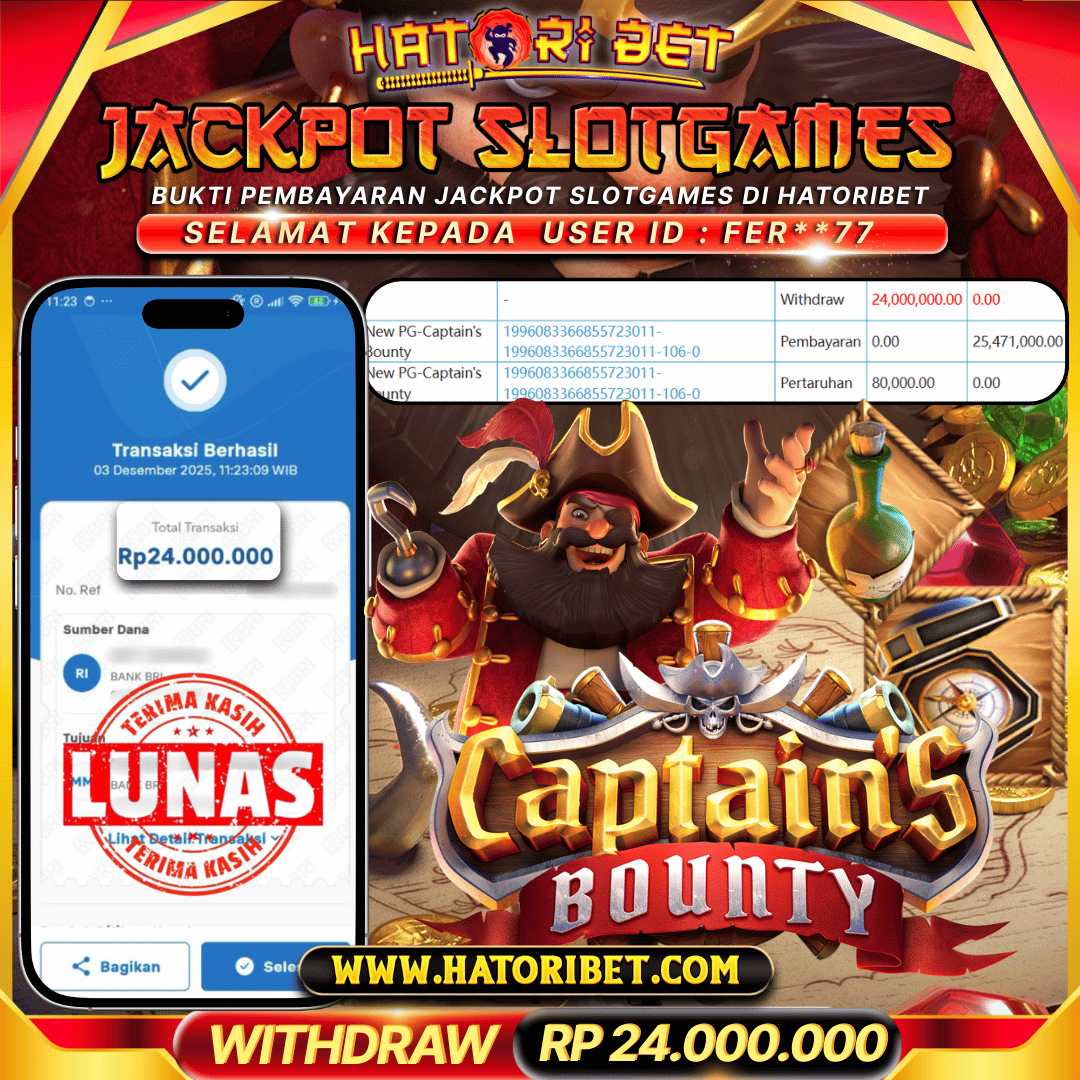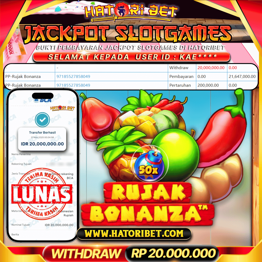 HATORIBET JACKPOT SPORT AP GAMING RP 35,000,000 ,- LUNAS
