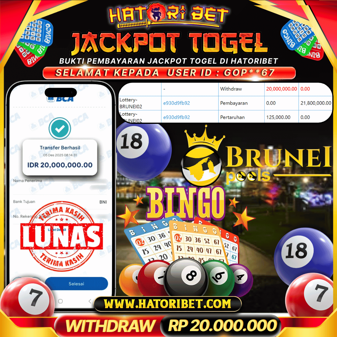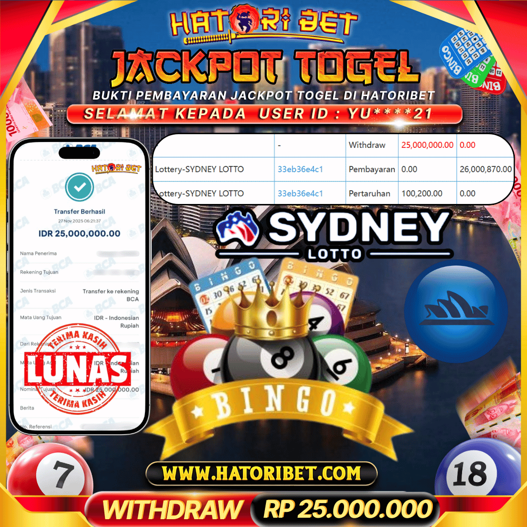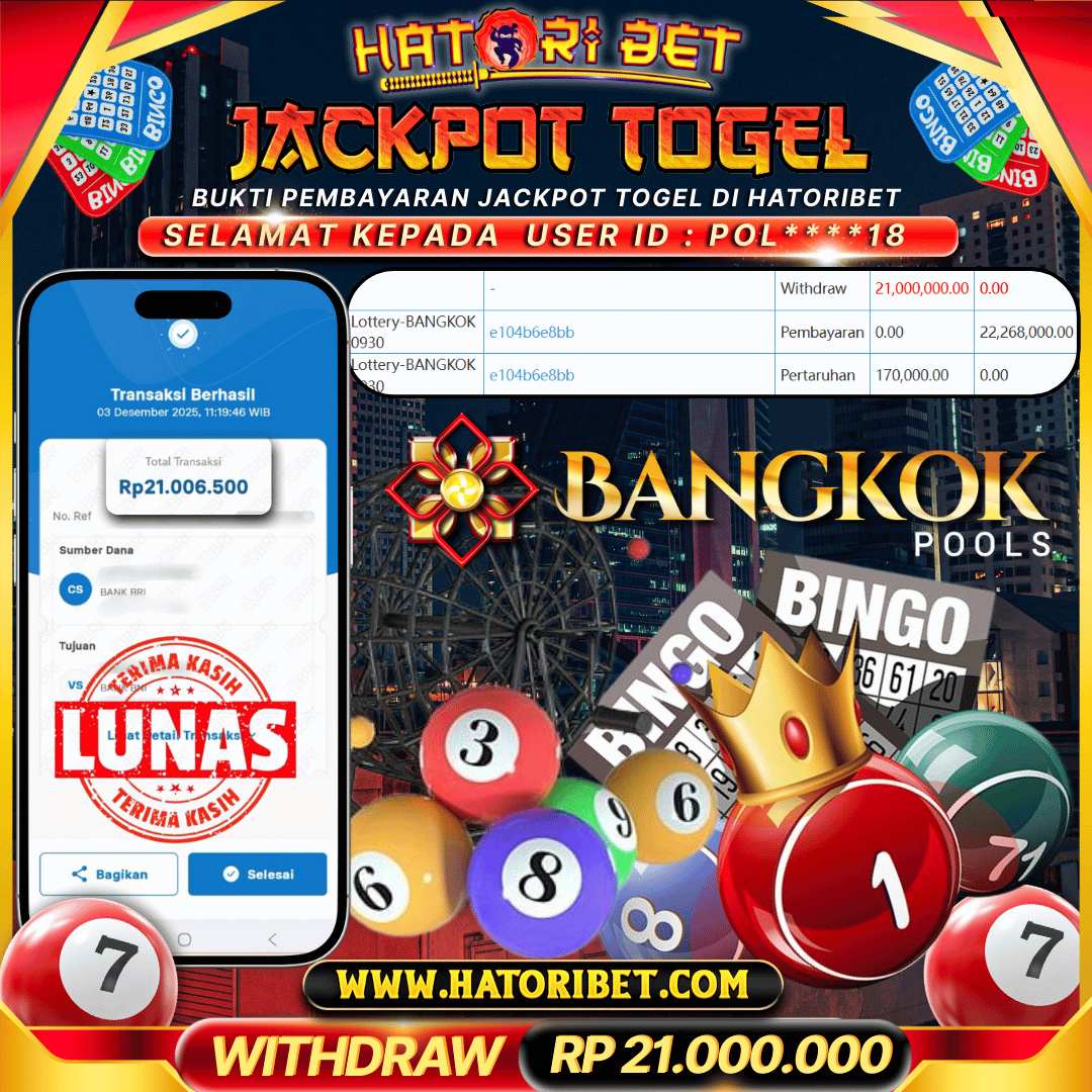 HATORIBET JACKPOT TOGEL HUAHIN RP 25,000,000 ,- LUNAS