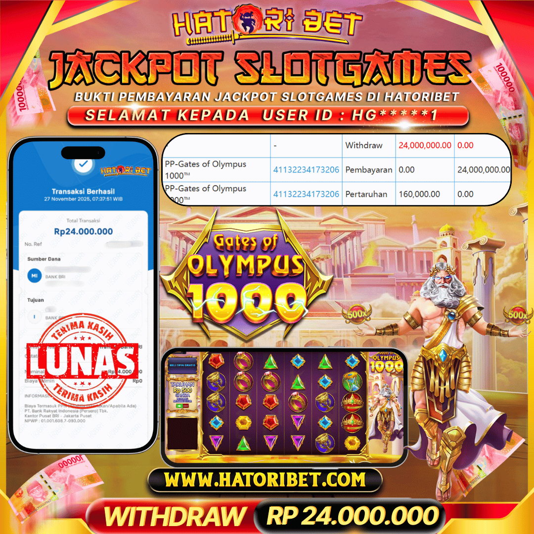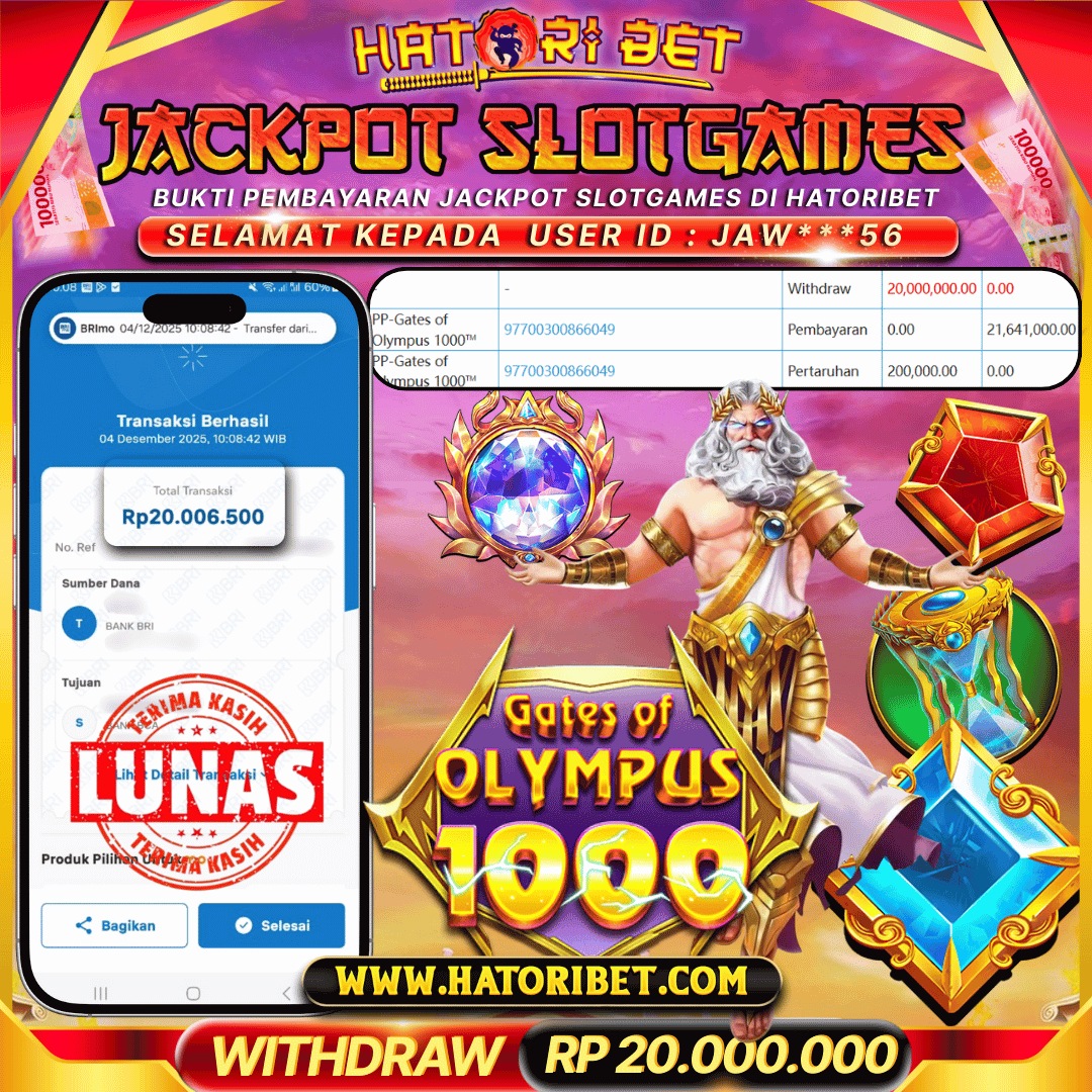 HATORIBET JACKPOT SLOTGAMES PP-GATES OF OLYMPUS 1000 20,000,000 ,- LUNAS