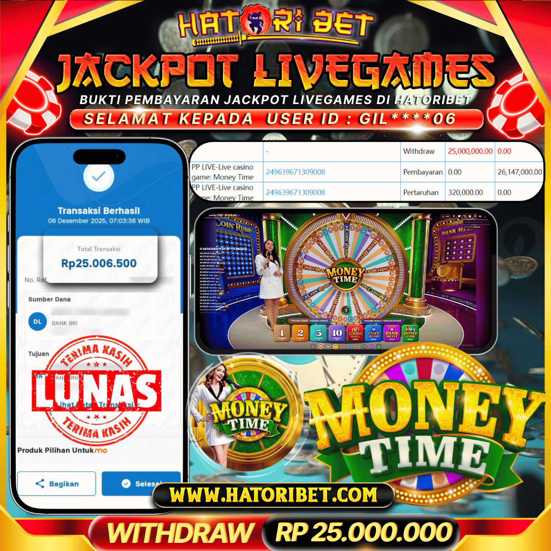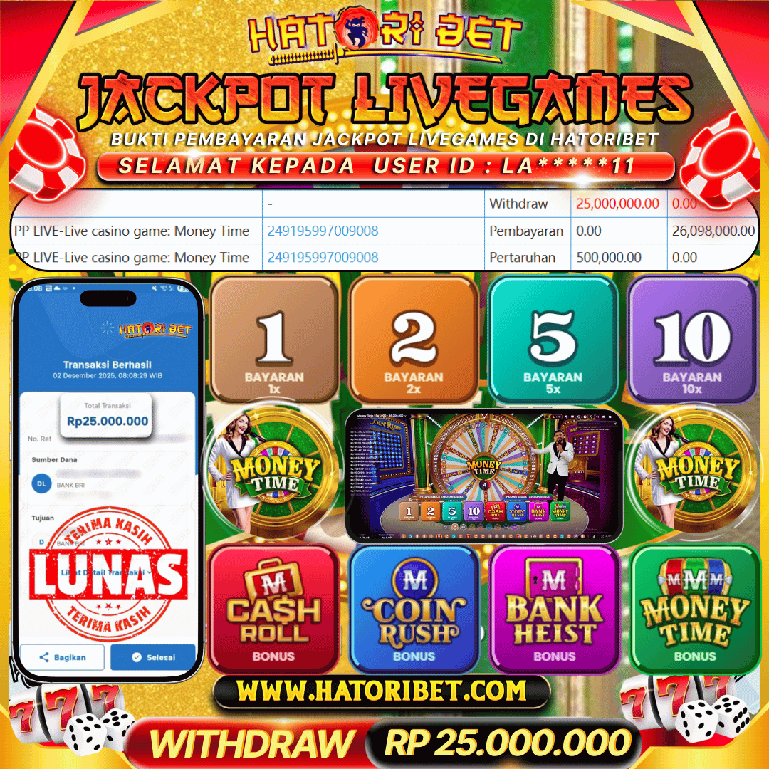 HATORIBET JACKPOT LIVEGAMES PP LIVE-MONEY TIME RP 22,000,000 ,- LUNAS