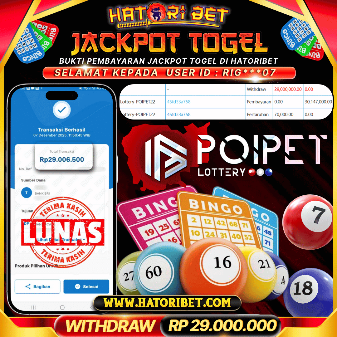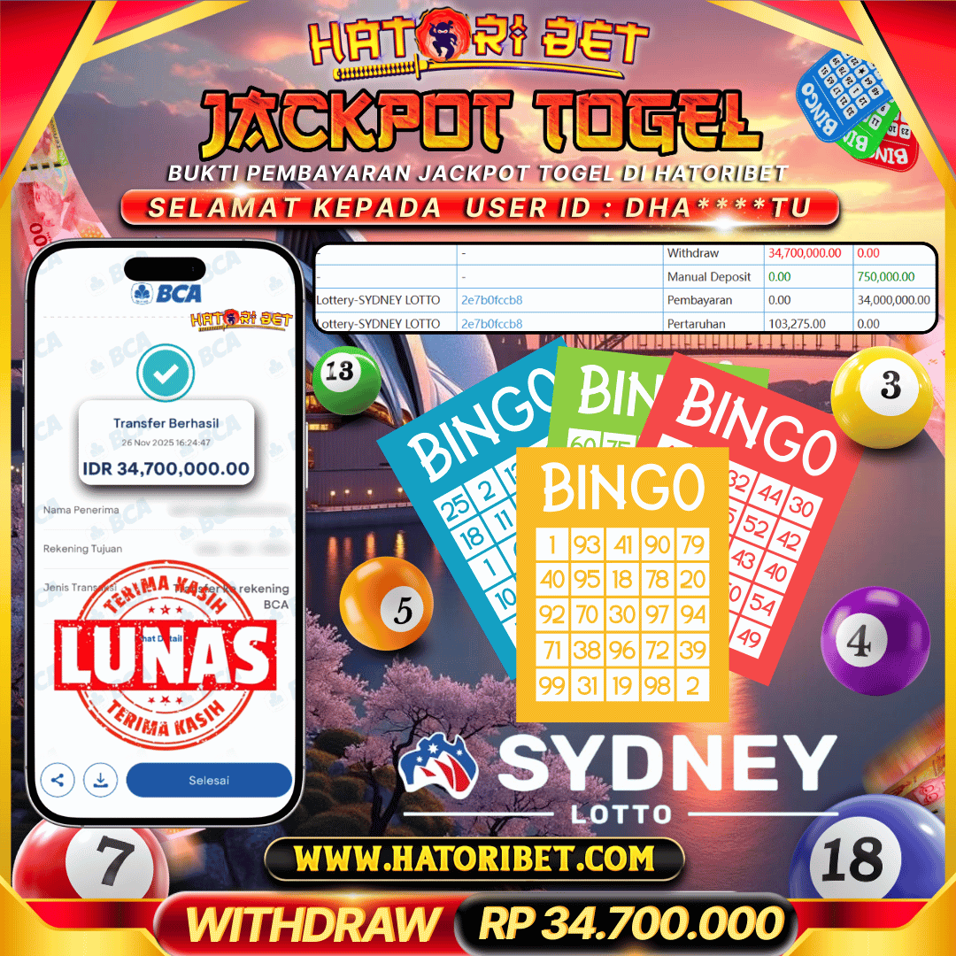 HATORIBET JACKPOT TOGEL HOKI DRAW RP 35,600,000 ,- LUNAS