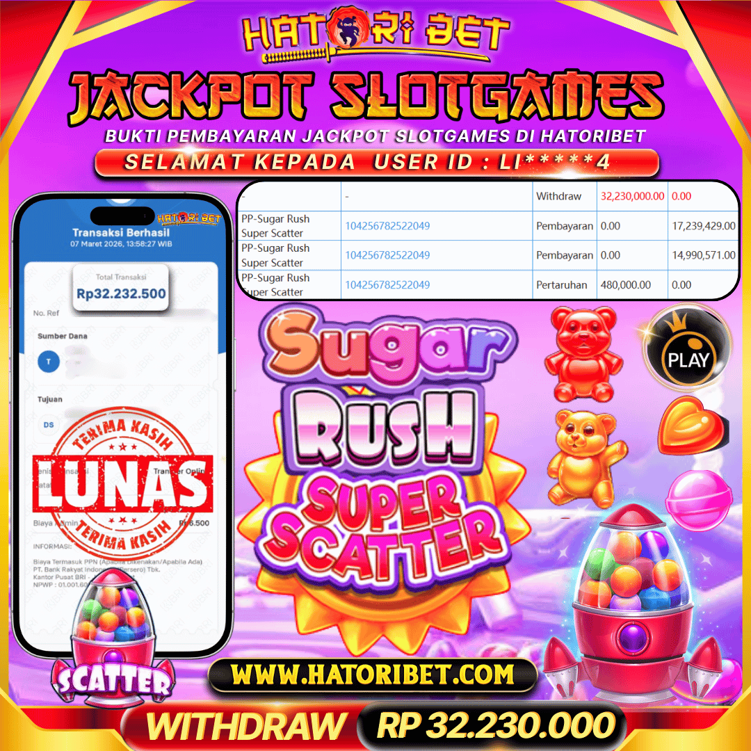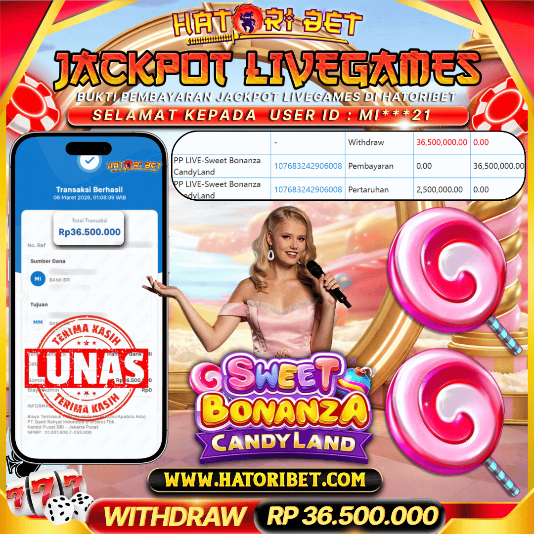 HATORIBET JACKPOT LIVEGAMES SWEET BONANZA CANDYLAND RP 35,000,000 ,- LUNAS