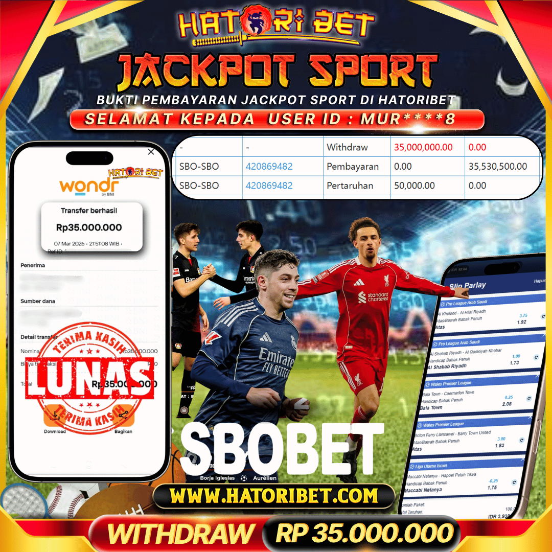 HATORIBET JACKPOT SPORTBOOK SBOBET RP 25,000,000 ,- LUNAS