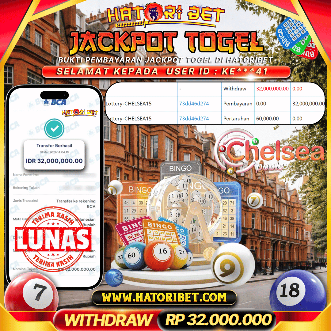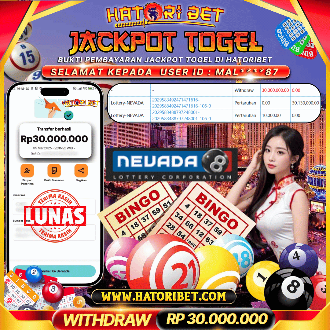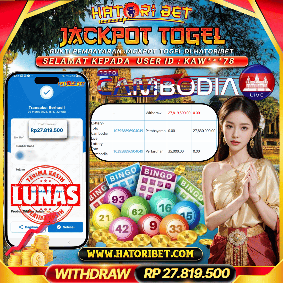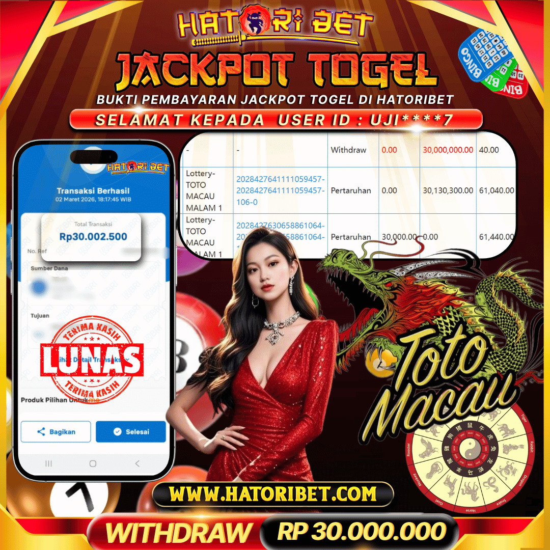 HATORIBET JACKPOT TOGEL LOTTERY TOTO MACAU RP 25,000,000 ,- LUNAS