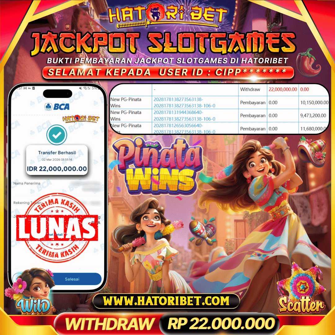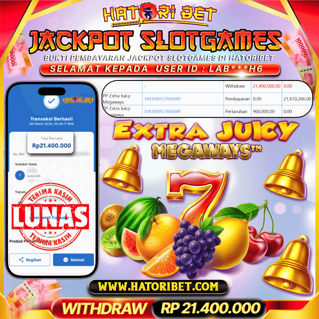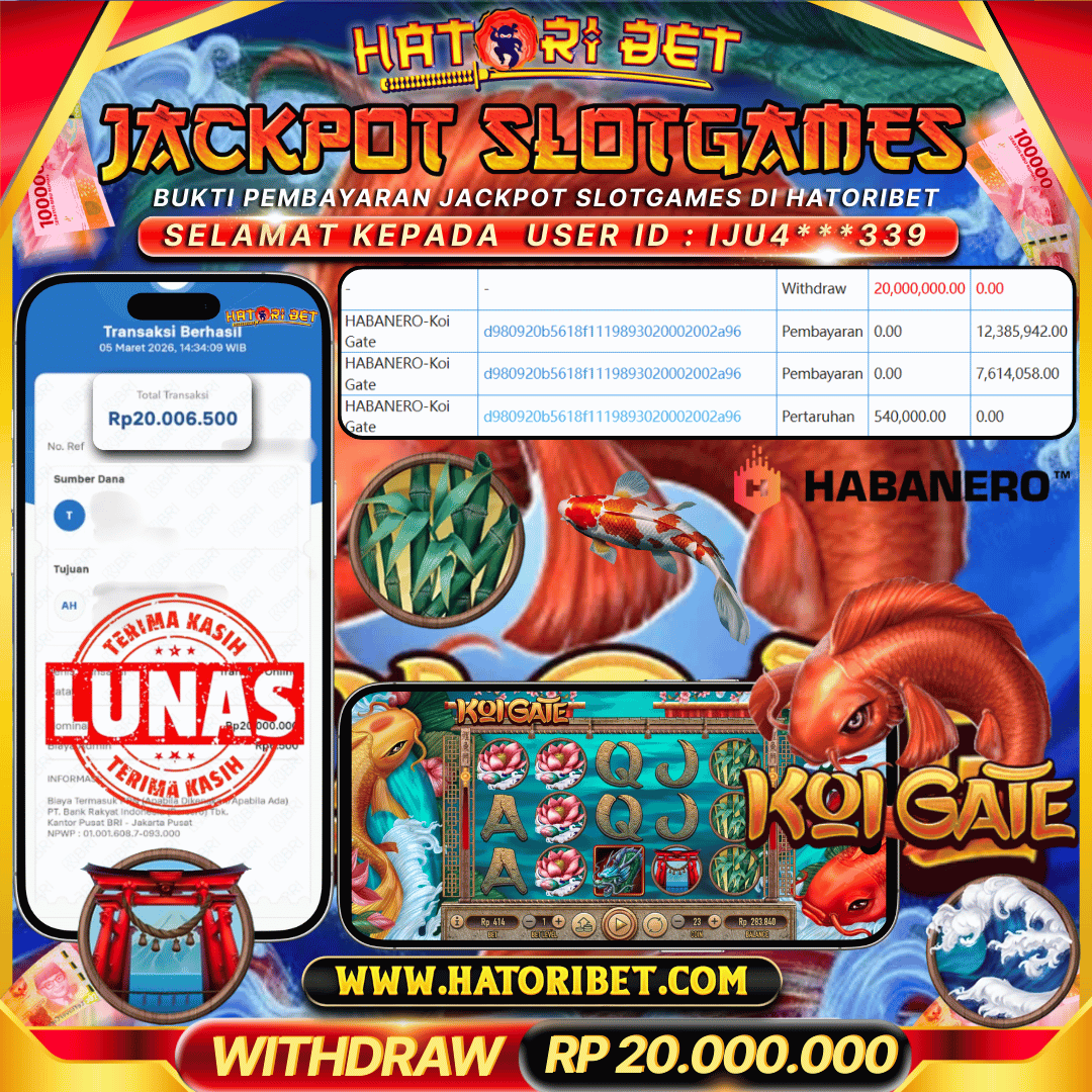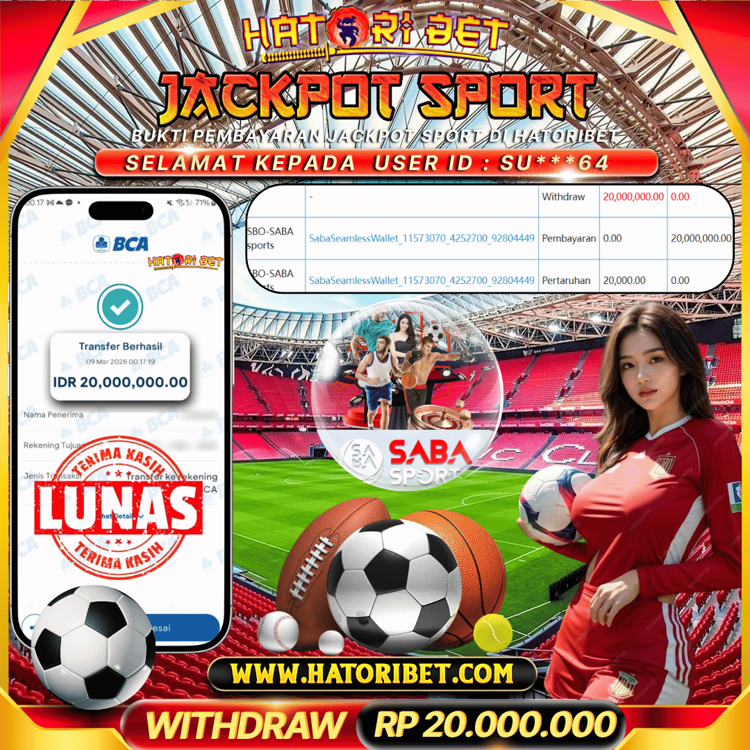 Selamat kepada UserId : SA****U2 telah berhasil mendapatkan kemenangan besar pada permainan SLOTGAMES PG SOFT-CAPTAINS BOUNTY sebesar RP 20,000,000 , Setelah mengisi formulir withdraw dalam kurung waktu hanya 5 – 10 menit pihak HatoriBet sudah melakukan transfer kepada pemilik UserId dan dana sudah dapat di cairkan oleh pemenang. Bukti pembayaran yang kami berikan merupakan bukti pembayaran yang SAH / VALID yang langsung di dapatkan melaui tanda transfer transaksi dari Bank yang di tuju. Kami mengucapakan banyak Terima Kasih Kepada pemenang karena sudah mempercayakan kami sebagai Bandar terpercaya yang membayar semua kemenangan member hingga lunas. Masih ragu dengan HatoriBet? Di mana bandar slot dan togel online sekarang yang terpercaya seperti hatoribet ? Bandar yang mengirimkan kemenangan member tanpa bertele – tele. Jadi.... tidak perlu khawatir pada situs HATORIBET karena kemenangan berapapun akan dibayarkan hingga lunas kepada pemenang.