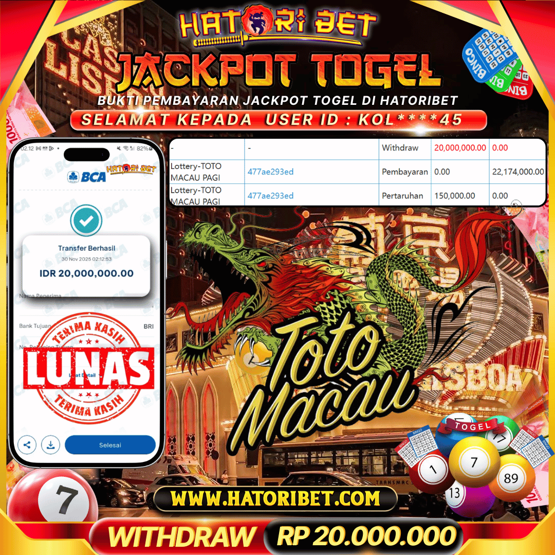 HATORIBET JACKPOT TOGEL TOTO MACAU RP 28,000,000 ,- LUNAS