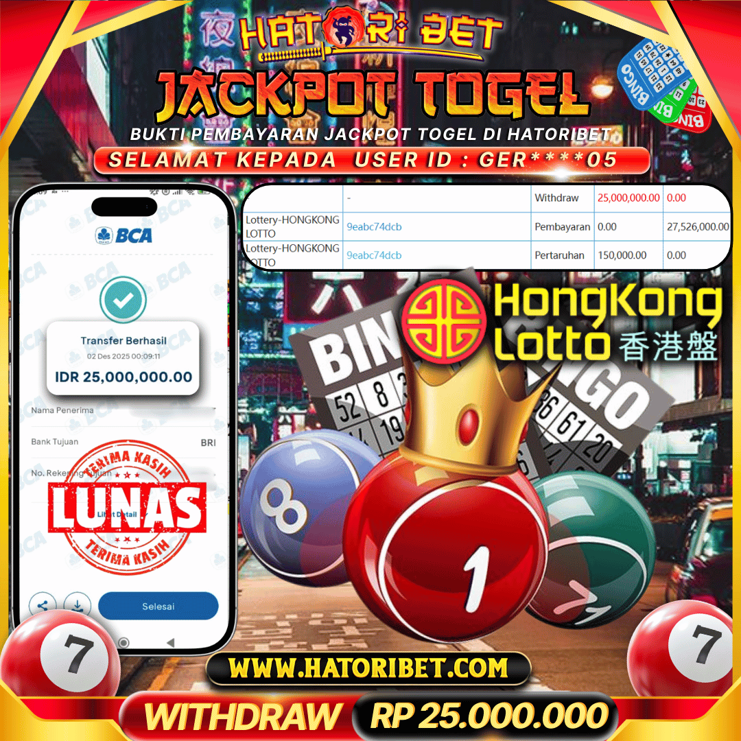 HATORIBET JACKPOT TOGEL HONGKONG RP 50,000,000 ,- LUNAS