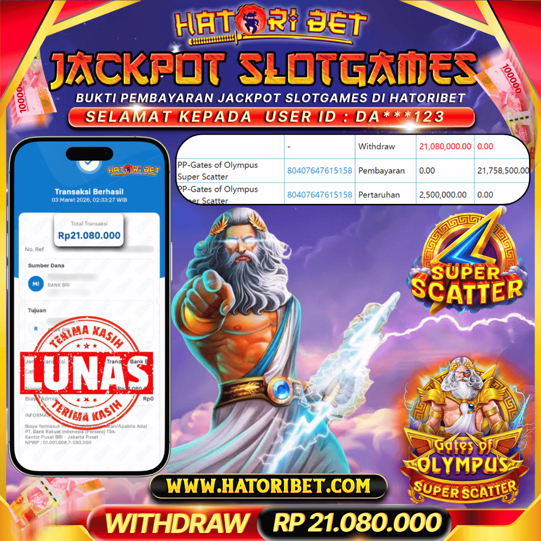 HATORIBET JACKPOT SLOTGAMES PP-GATES OLYMPUS 1000 RP 20,000,000 ,- LUNAS