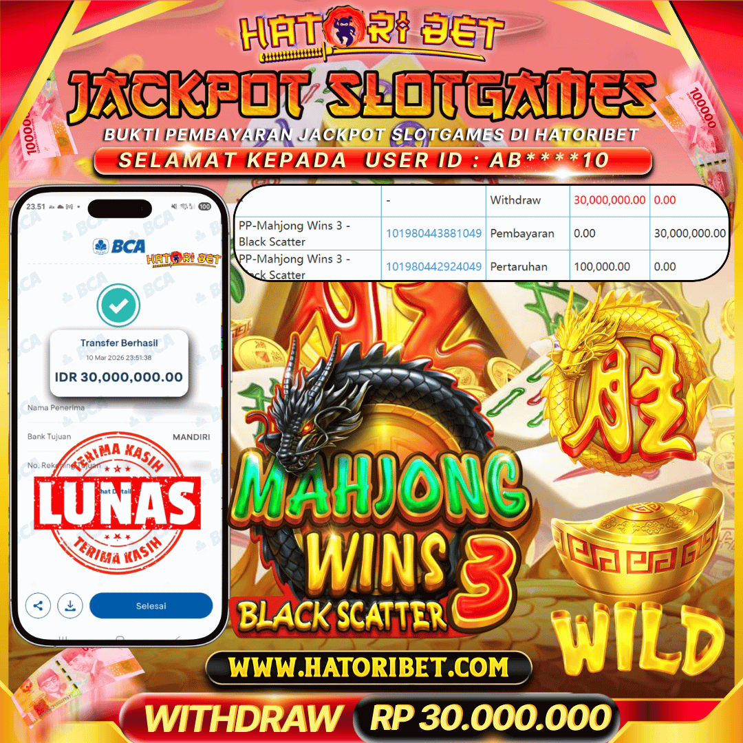 Selamat kepada UserId : OI*****9 telah berhasil mendapatkan kemenangan besar pada permainan SLOTGAMES PP-MAHJONG WINS 2 21,000,000 , Setelah mengisi formulir withdraw dalam kurung waktu hanya 5 – 10 menit pihak HatoriBet sudah melakukan transfer kepada pemilik UserId dan dana sudah dapat di cairkan oleh pemenang. Bukti pembayaran yang kami berikan merupakan bukti pembayaran yang SAH / VALID yang langsung di dapatkan melaui tanda transfer transaksi dari Bank yang di tuju. Kami mengucapakan banyak Terima Kasih Kepada pemenang karena sudah mempercayakan kami sebagai Bandar terpercaya yang membayar semua kemenangan member hingga lunas. Masih ragu dengan HatoriBet? Di mana bandar slot dan togel online sekarang yang terpercaya seperti hatoribet ? Bandar yang mengirimkan kemenangan member tanpa bertele – tele. Jadi.... tidak perlu khawatir pada situs HATORIBET Karena kemenangan berapapun akan dibayarkan hingga lunas kepada pemenang