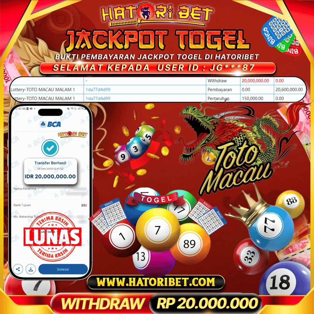 HATORIBET JACKPOT TOGEL TOTO MACAU RP 105,000,000 ,- LUNAS