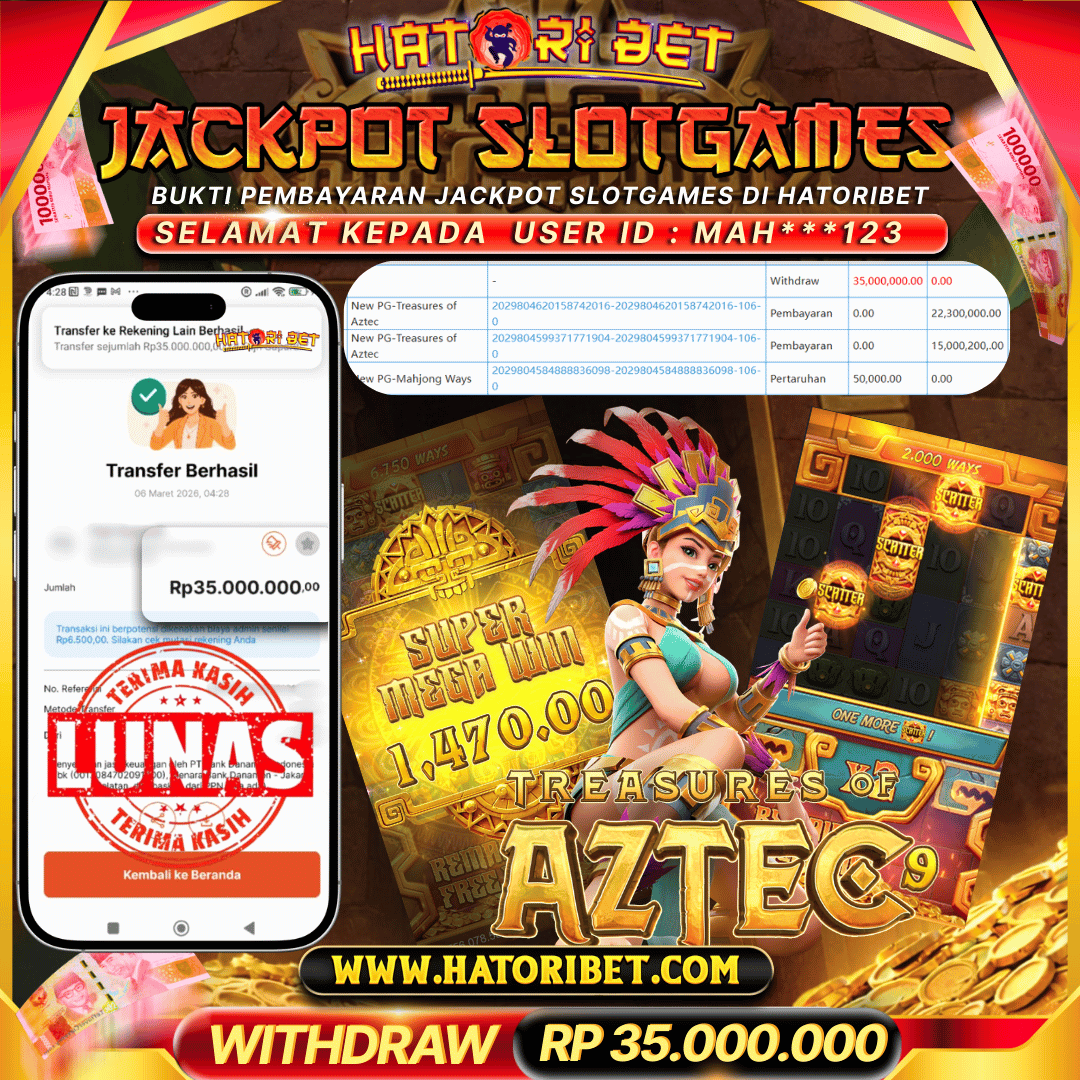 Selamat kepada UserId : GE****3 telah berhasil mendapatkan kemenangan besar pada permainan SLOTGAMES PG-MAHJONG WAYS 2 29,000,000 , Setelah mengisi formulir withdraw dalam kurung waktu hanya 5 – 10 menit pihak HatoriBet sudah melakukan transfer kepada pemilik UserId dan dana sudah dapat di cairkan oleh pemenang. Bukti pembayaran yang kami berikan merupakan bukti pembayaran yang SAH / VALID yang langsung di dapatkan melaui tanda transfer transaksi dari Bank yang di tuju. Kami mengucapakan banyak Terima Kasih Kepada pemenang karena sudah mempercayakan kami sebagai Bandar terpercaya yang membayar semua kemenangan member hingga lunas. Masih ragu dengan HatoriBet? Di mana bandar slot dan togel online sekarang yang terpercaya seperti hatoribet ? Bandar yang mengirimkan kemenangan member tanpa bertele – tele. Jadi.... tidak perlu khawatir pada situs HATORIBET Karena kemenangan berapapun akan dibayarkan hingga lunas kepada pemenang.