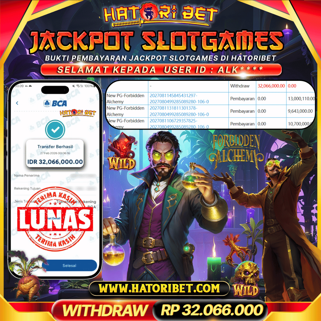 Selamat kepada UserId : AL*****N2 telah berhasil mendapatkan kemenangan besar pada permainan SLOTGAMES PG SOFT-CRYPTO GOLD sebesar RP 25,000,000 , Setelah mengisi formulir withdraw dalam kurung waktu hanya 5 – 10 menit pihak HatoriBet sudah melakukan transfer kepada pemilik UserId dan dana sudah dapat di cairkan oleh pemenang. Bukti pembayaran yang kami berikan merupakan bukti pembayaran yang SAH / VALID yang langsung di dapatkan melaui tanda transfer transaksi dari Bank yang di tuju. Kami mengucapakan banyak Terima Kasih Kepada pemenang karena sudah mempercayakan kami sebagai Bandar terpercaya yang membayar semua kemenangan member hingga lunas. Masih ragu dengan HatoriBet? Di mana bandar slot dan togel online sekarang yang terpercaya seperti hatoribet ? Bandar yang mengirimkan kemenangan member tanpa bertele – tele. Jadi.... tidak perlu khawatir pada situs HATORIBET karena kemenangan berapapun akan dibayarkan hingga lunas kepada pemenang.
