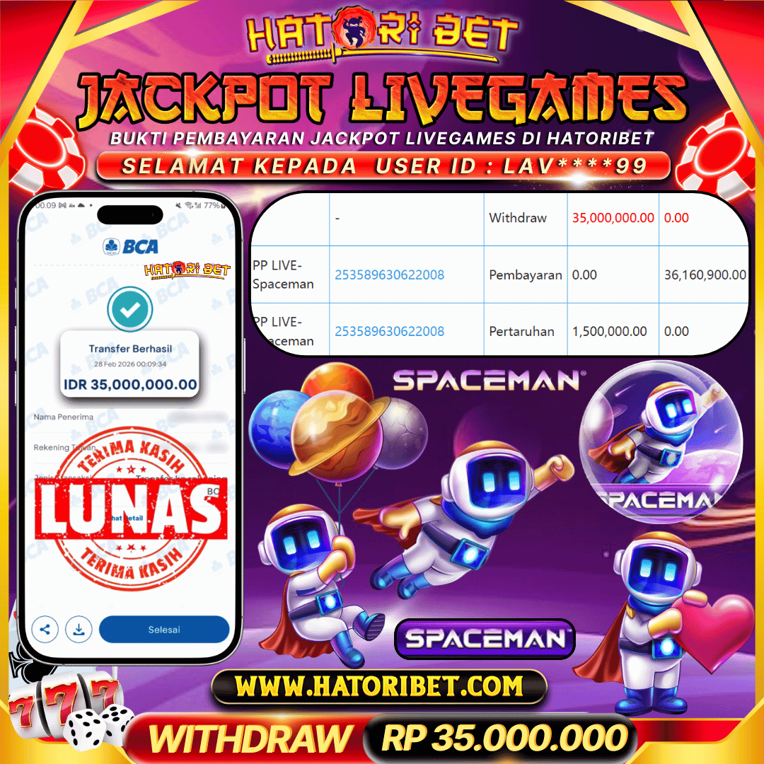HATORIBET JACKPOT LIVEGAMES PP LIVE-SPACEMAN RP 27,000,000 ,- LUNAS