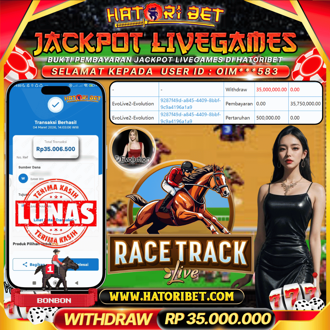 Selamat kepada UserId : TO****KY telah berhasil mendapatkan kemenangan besar pada permainan LIVEGAMES EVOLUTION-MONOPOLY LIVE sebesar RP 40,168,000 , Setelah mengisi formulir withdraw dalam kurung waktu hanya 5 – 10 menit pihak HatoriBet sudah melakukan transfer kepada pemilik UserId dan dana sudah dapat di cairkan oleh pemenang. Bukti pembayaran yang kami berikan merupakan bukti pembayaran yang SAH / VALID yang langsung di dapatkan melaui tanda transfer transaksi dari Bank yang di tuju. Kami mengucapakan banyak Terima Kasih Kepada pemenang karena sudah mempercayakan kami sebagai Bandar terpercaya yang membayar semua kemenangan member hingga lunas. Masih ragu dengan HatoriBet? Di mana bandar slot dan togel online sekarang yang terpercaya seperti hatoribet ? Bandar yang mengirimkan kemenangan member tanpa bertele – tele. Jadi.... tidak perlu khawatir pada situs HATORIBET karena kemenangan berapapun akan dibayarkan hingga lunas kepada pemenang.