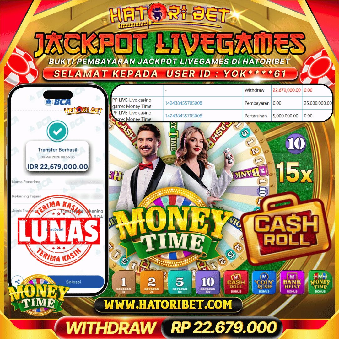 HATORIBET JACKPOT LIVEGAMES PP LIVE-LIVE CASINO GAME MONEY TIME RP 25,000,000 ,- LUNAS