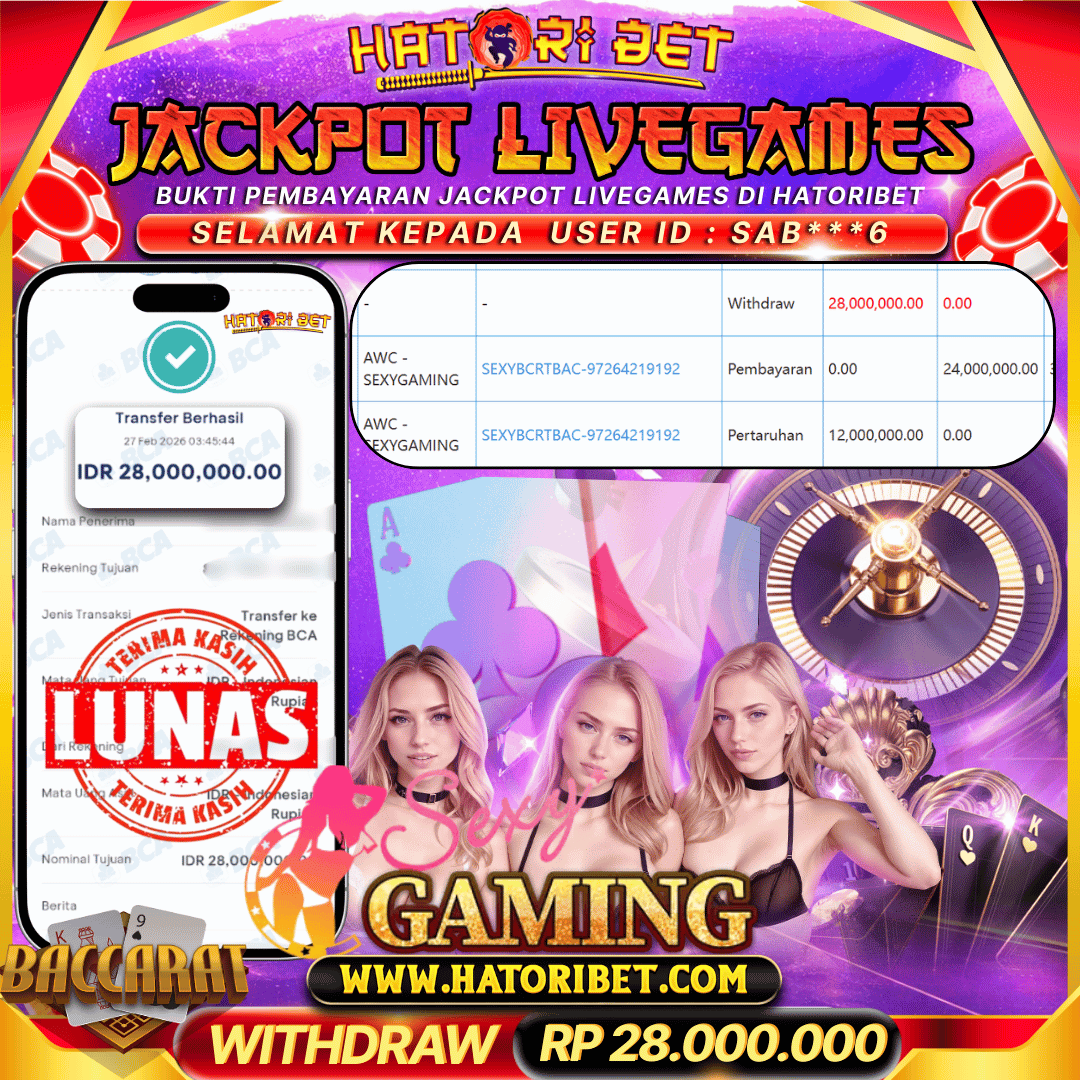 HATORIBET JACKPOT LIVEGAMES PP LIVE-MEGA BACCARAT RP 28,000,000 ,- LUNAS