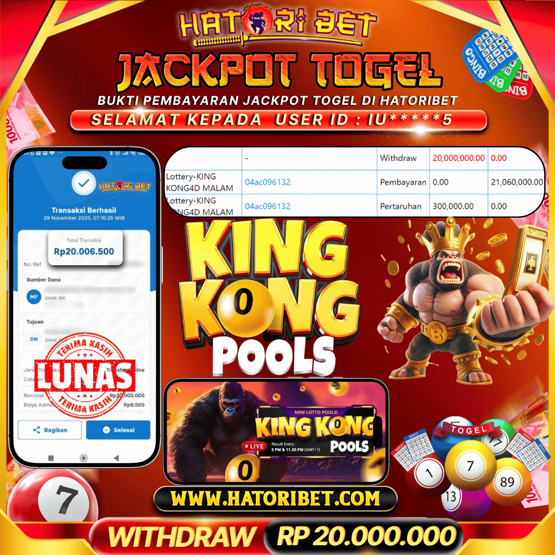 HATORIBET JACKPOT TOGEL KING KONG RP 20,000,000 ,- LUNAS