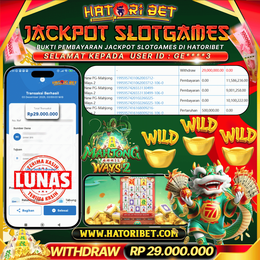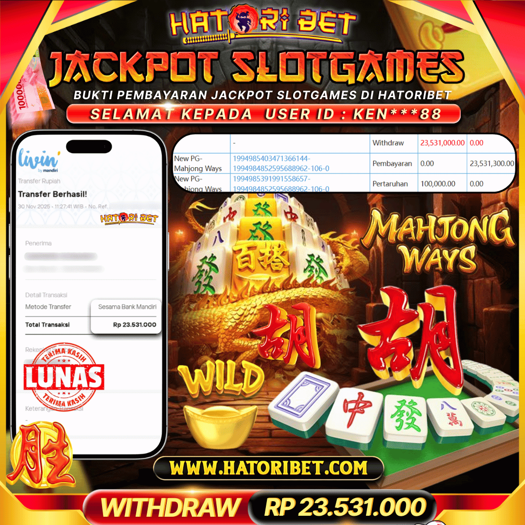 HATORIBET JACKPOT SLOTGAMES PG-MAHJONG WAYS 22,000,000 ,- LUNAS