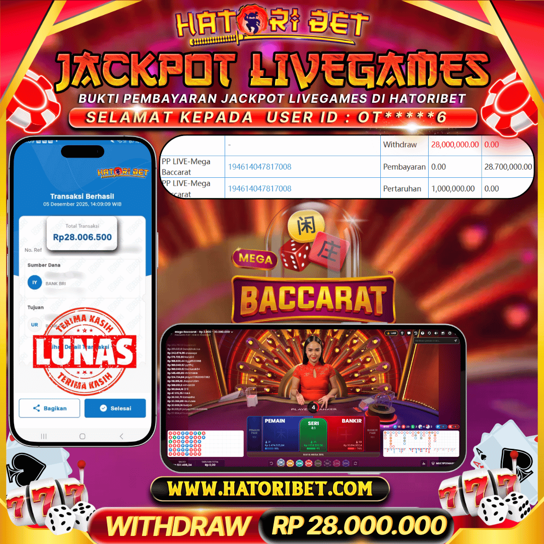 HATORIBET JACKPOT LIVEGAMES SEXY GAMING-BACCARAT C02 RP 21,273,000 ,- LUNAS