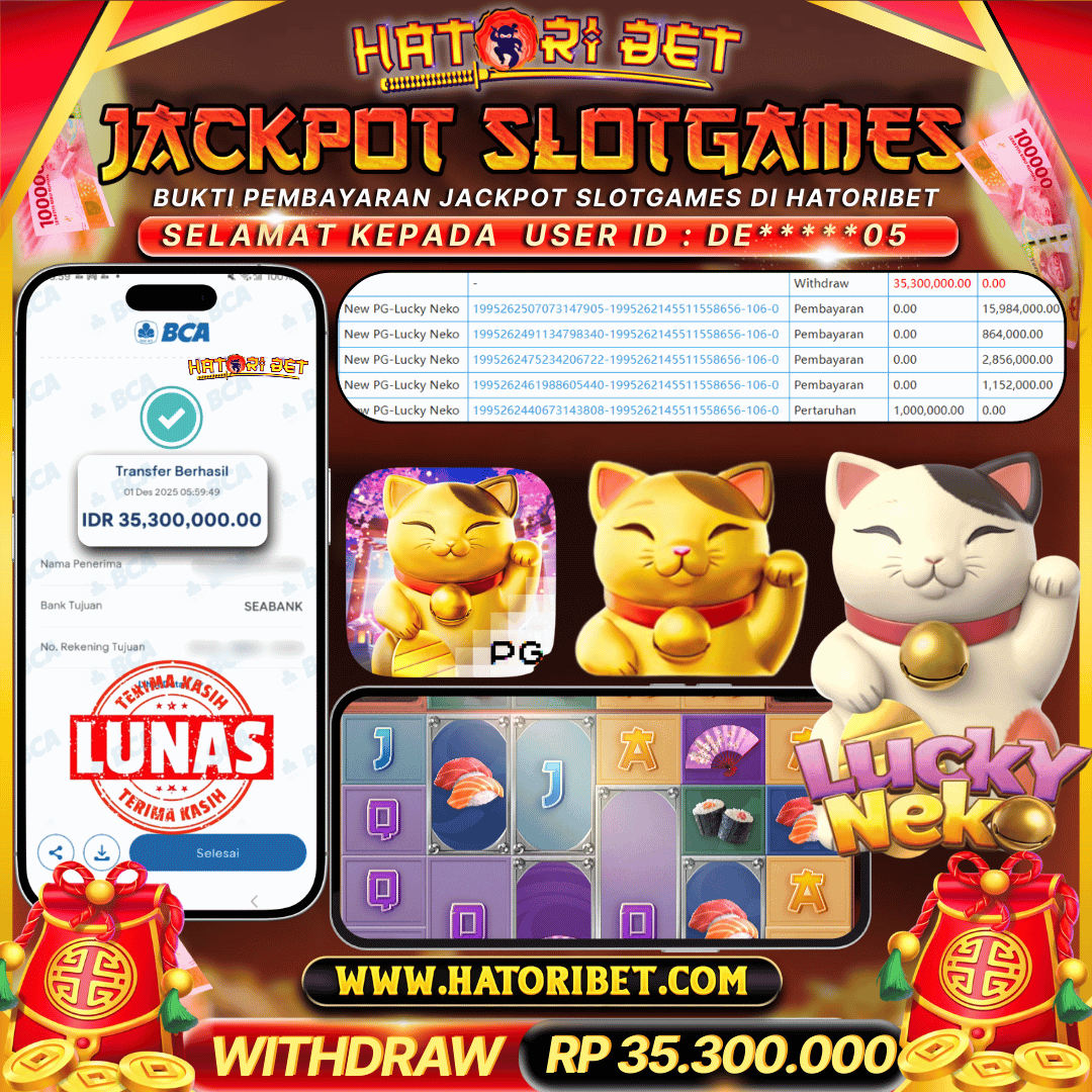 HATORIBET JACKPOT SLOTGAMES PG-LUCKY NEKO 20.900,000 ,- LUNAS