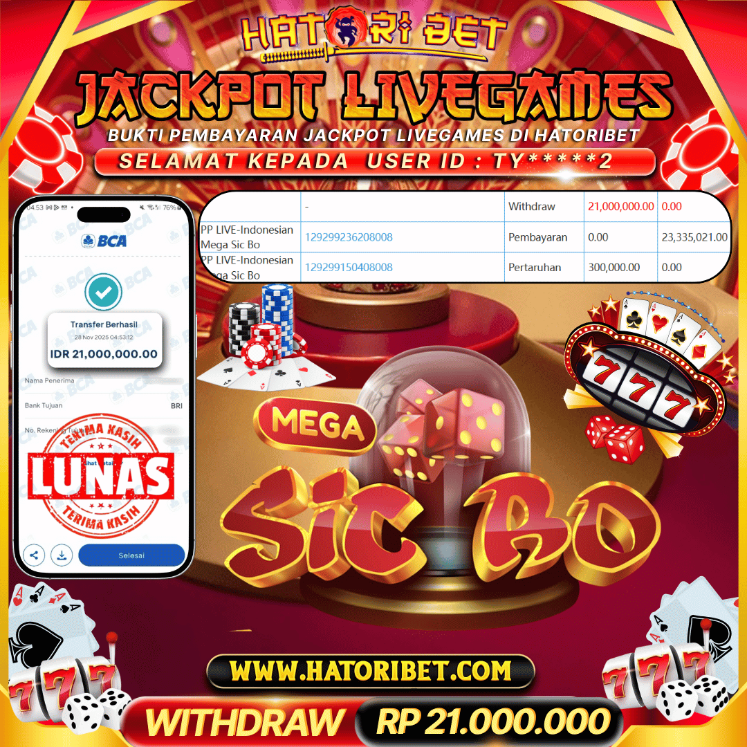 HATORIBET JACKPOT LIVEGAMES TGION LIVE-SIC BO RP 35,000,000 ,- LUNAS