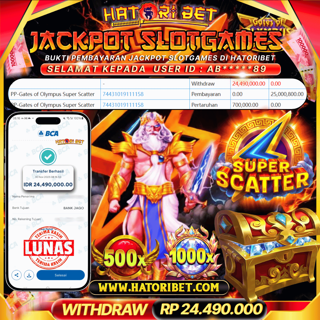 HATORIBET JACKPOT SLOTGAMES PP-GATES OF OLYMPUS SUPER SCATTER 51,104,000 ,- LUNAS