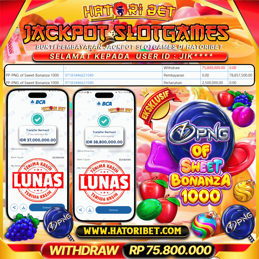 HATORIBET JACKPOT SLOTGAMES PP-SWEET BONANZA 1000 100,000,000 ,- LUNAS