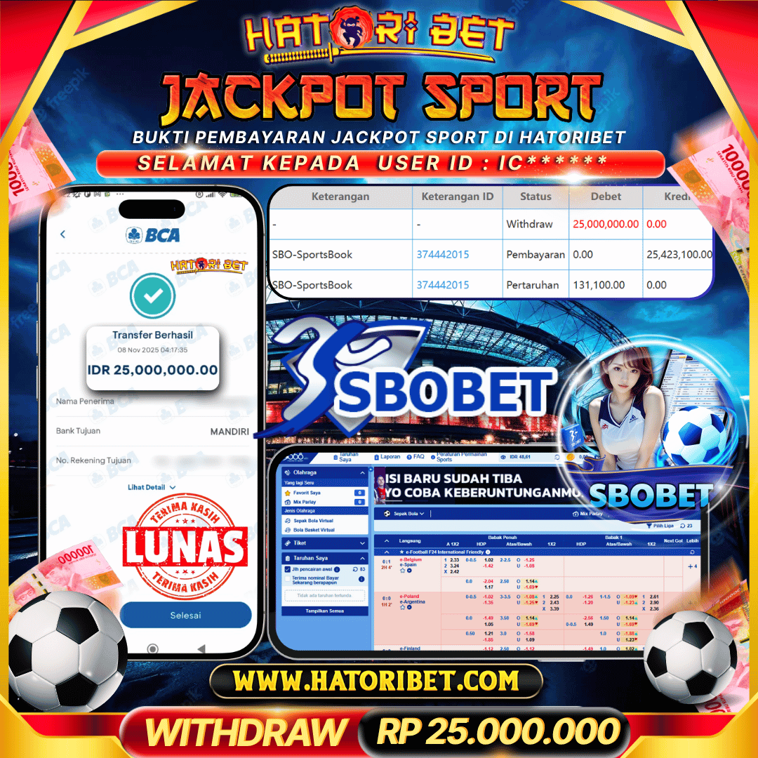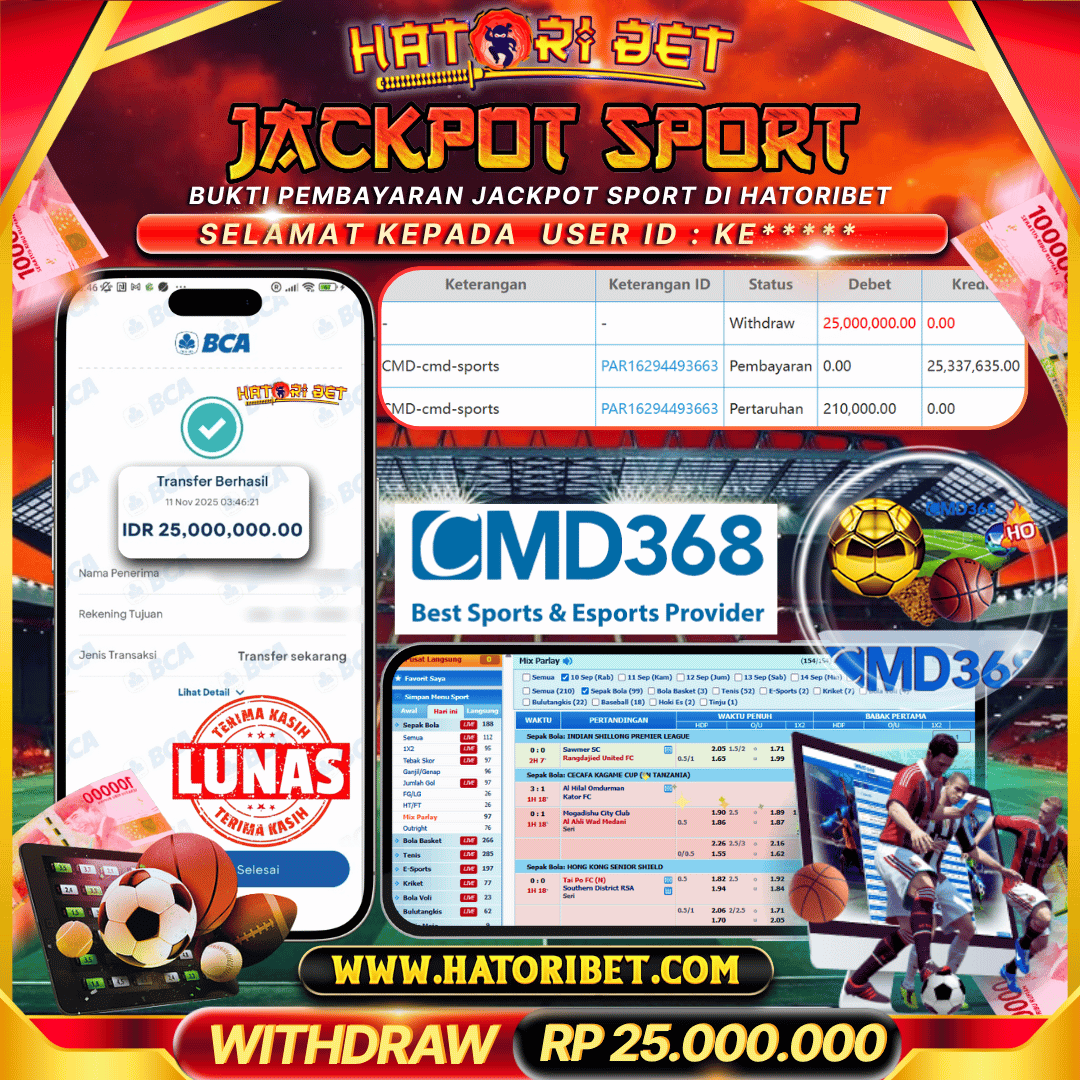 HATORIBET JACKPOT SPORT CMD368 RP 25,000,000 ,- LUNAS