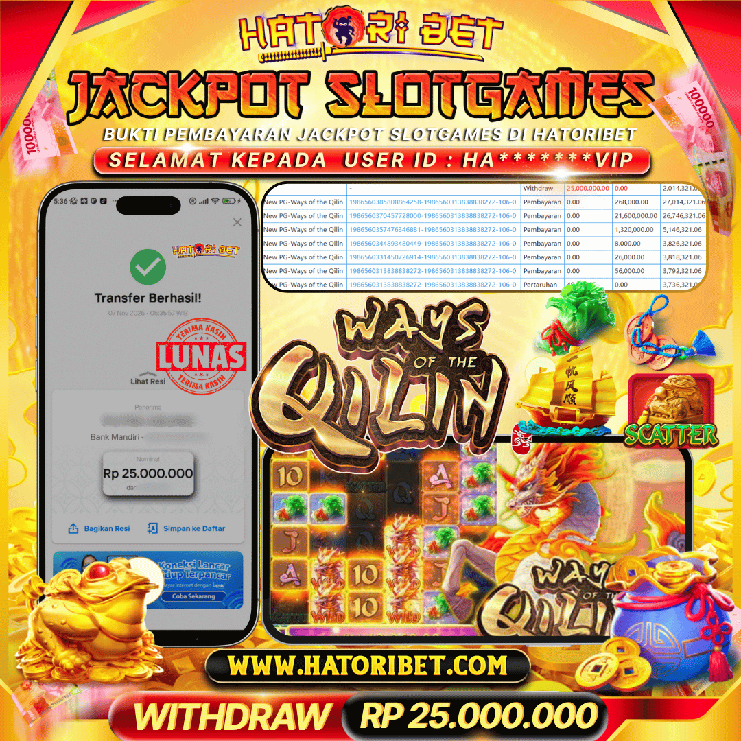 HATORIBET JACKPOT SLOTGAMES PG-WAYS OF THE QILIN 25,000,000 ,- LUNAS