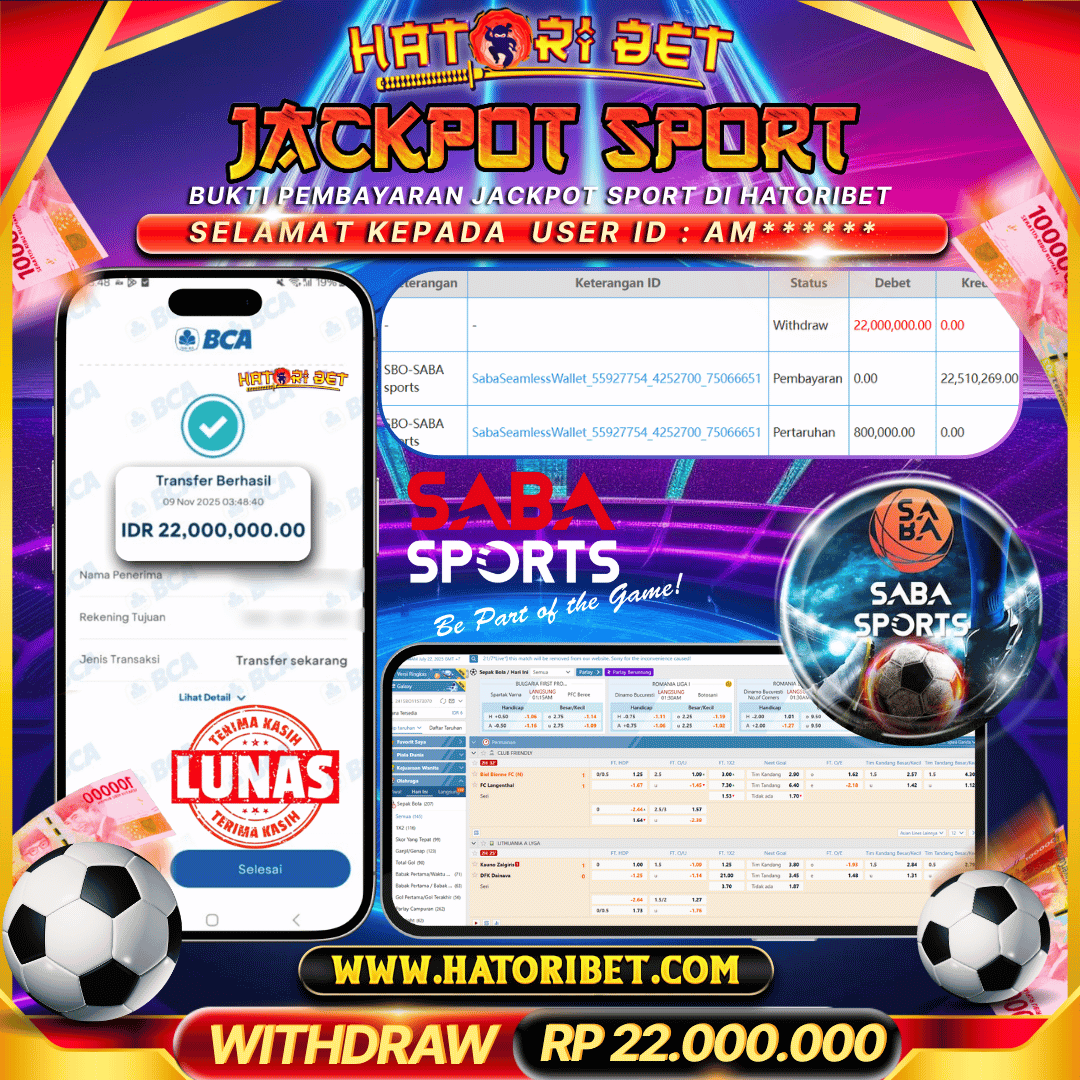 HATORIBET JACKPOT SPORT SABA RP 22,000,000 ,- LUNAS
