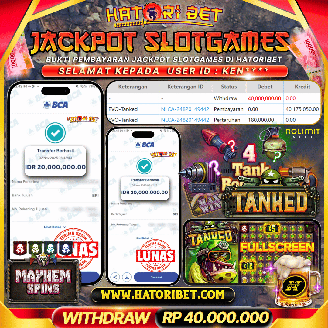 HATORIBET JACKPOT SLOTGAMES NLC-TANKED 40,000,000 ,- LUNAS
