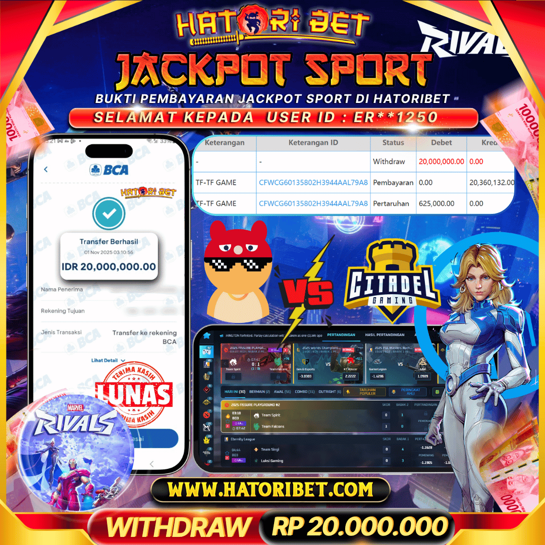 HATORIBET JACKPOT SPORT TF GAMING-MARVEL RIVALS RP 20,000,000 ,- LUNAS