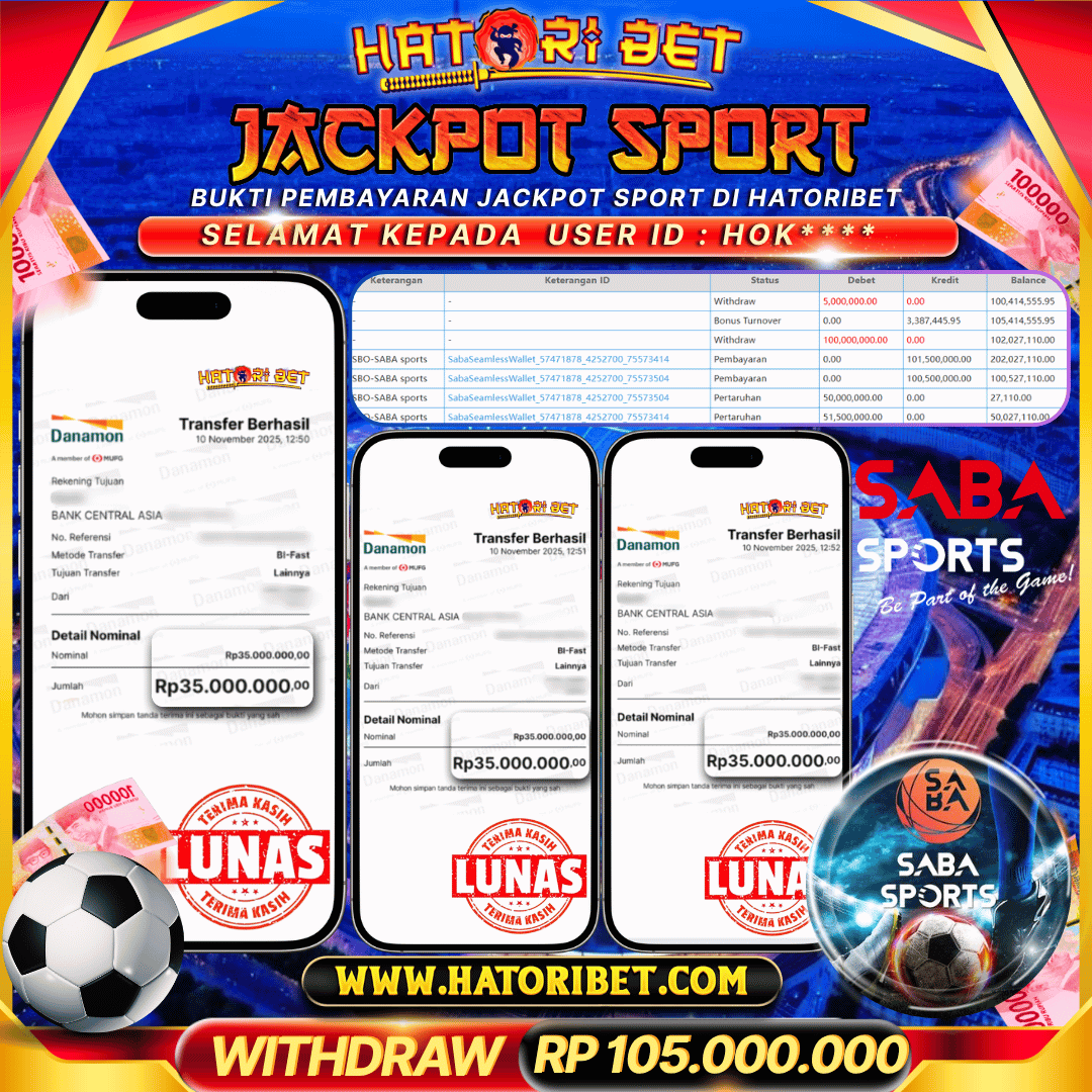 HATORIBET JACKPOT SPORT SABA RP 105,000,000 ,- LUNAS