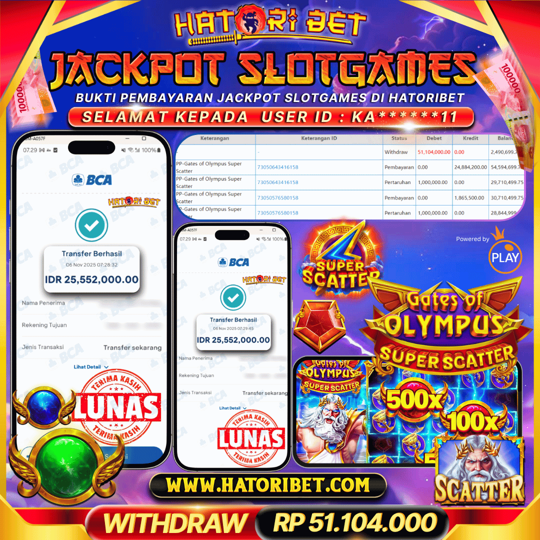 HATORIBET JACKPOT SLOTGAMES PP-GATES OF OLYMPUS SUPER SCATTER 51,104,000 ,- LUNAS
