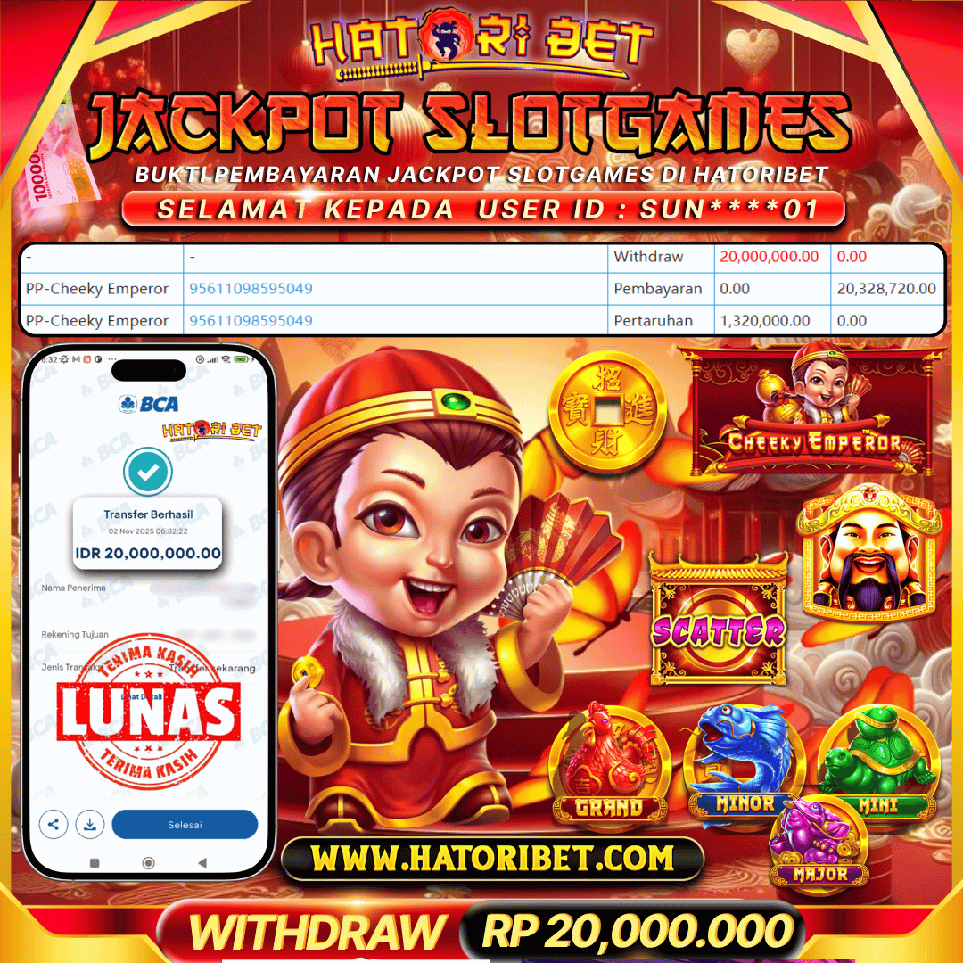HATORIBET JACKPOT SLOTGAMES PP-CHEEKY EMPEROR 20,000,000 ,- LUNAS