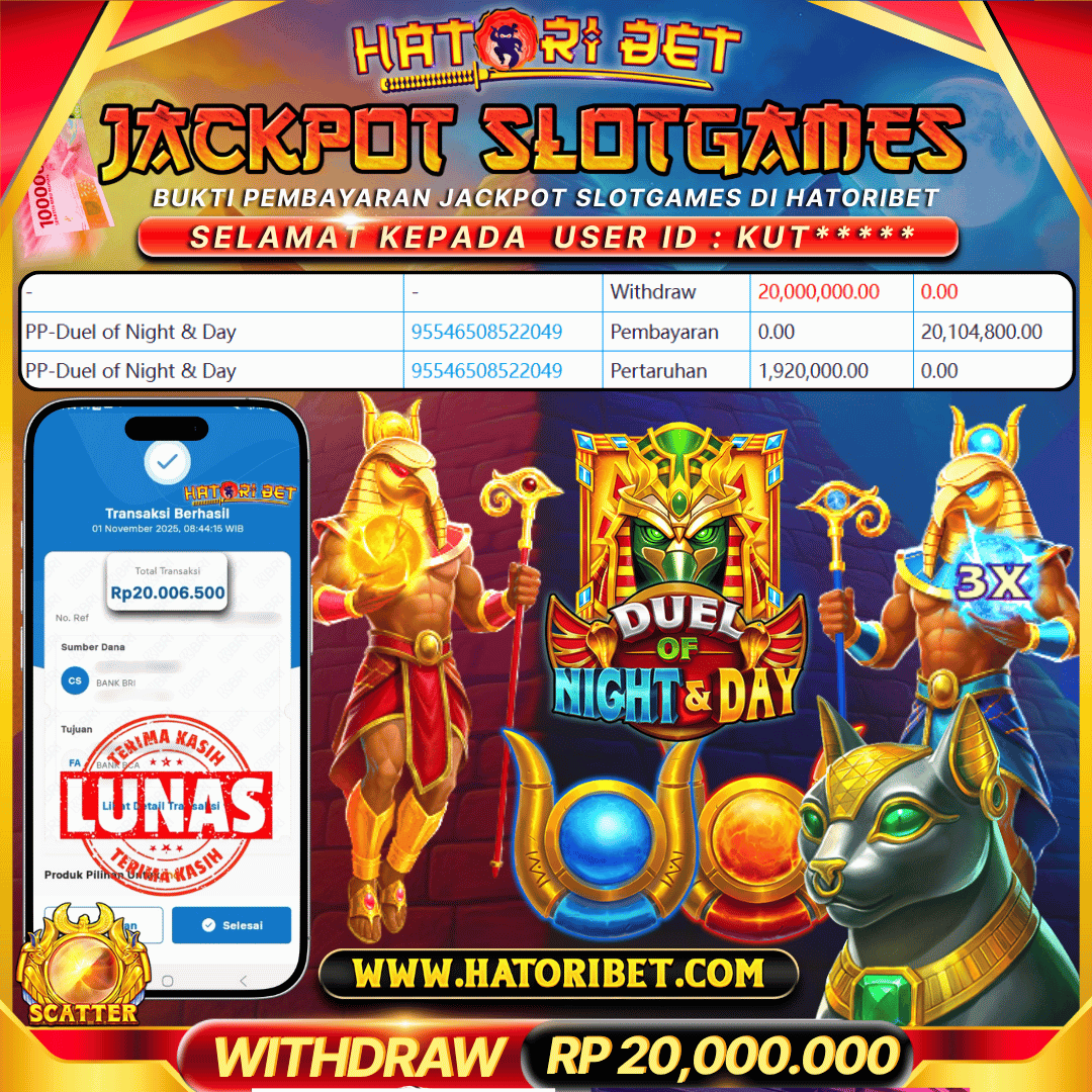 HATORIBET JACKPOT SLOTGAMES PP-DUEL OF NIGHT & DAY 20,000,000 ,- LUNAS
