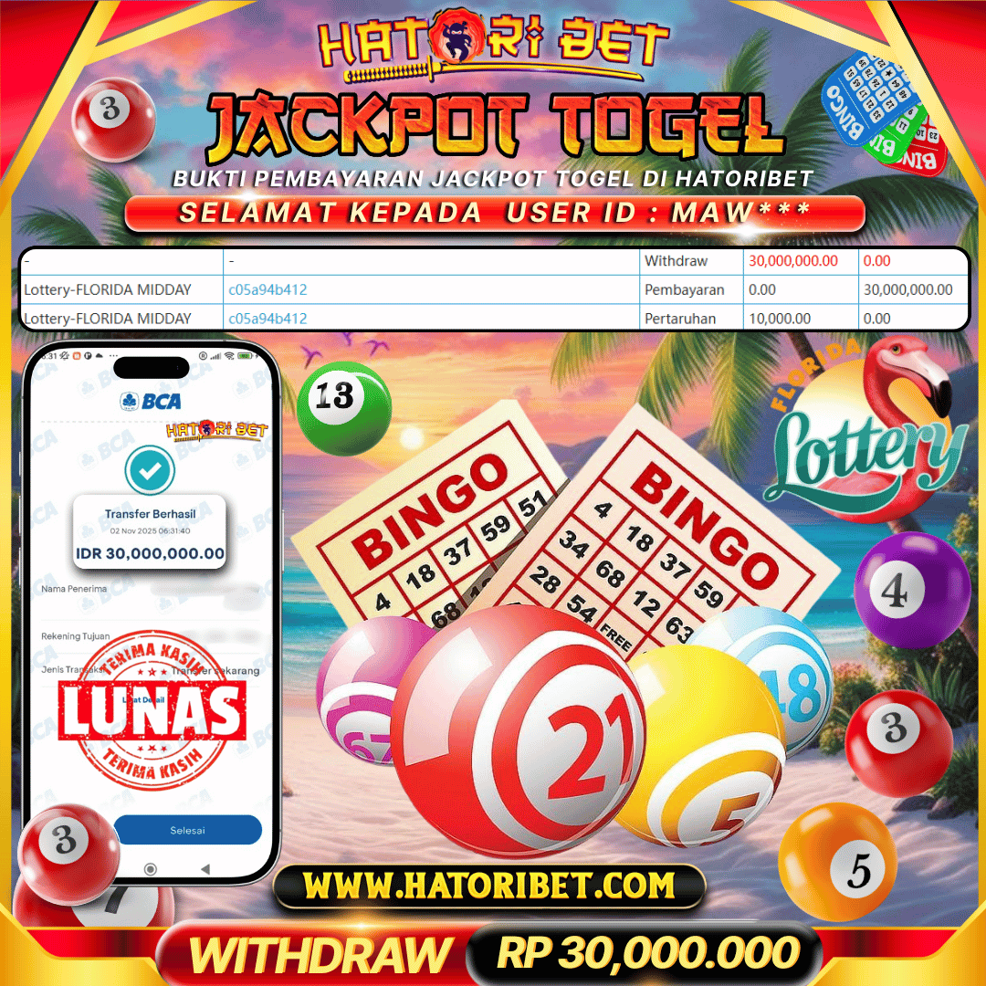 HATORIBET JACKPOT TOGEL FLORIDA RP 30,000,000 ,- LUNAS