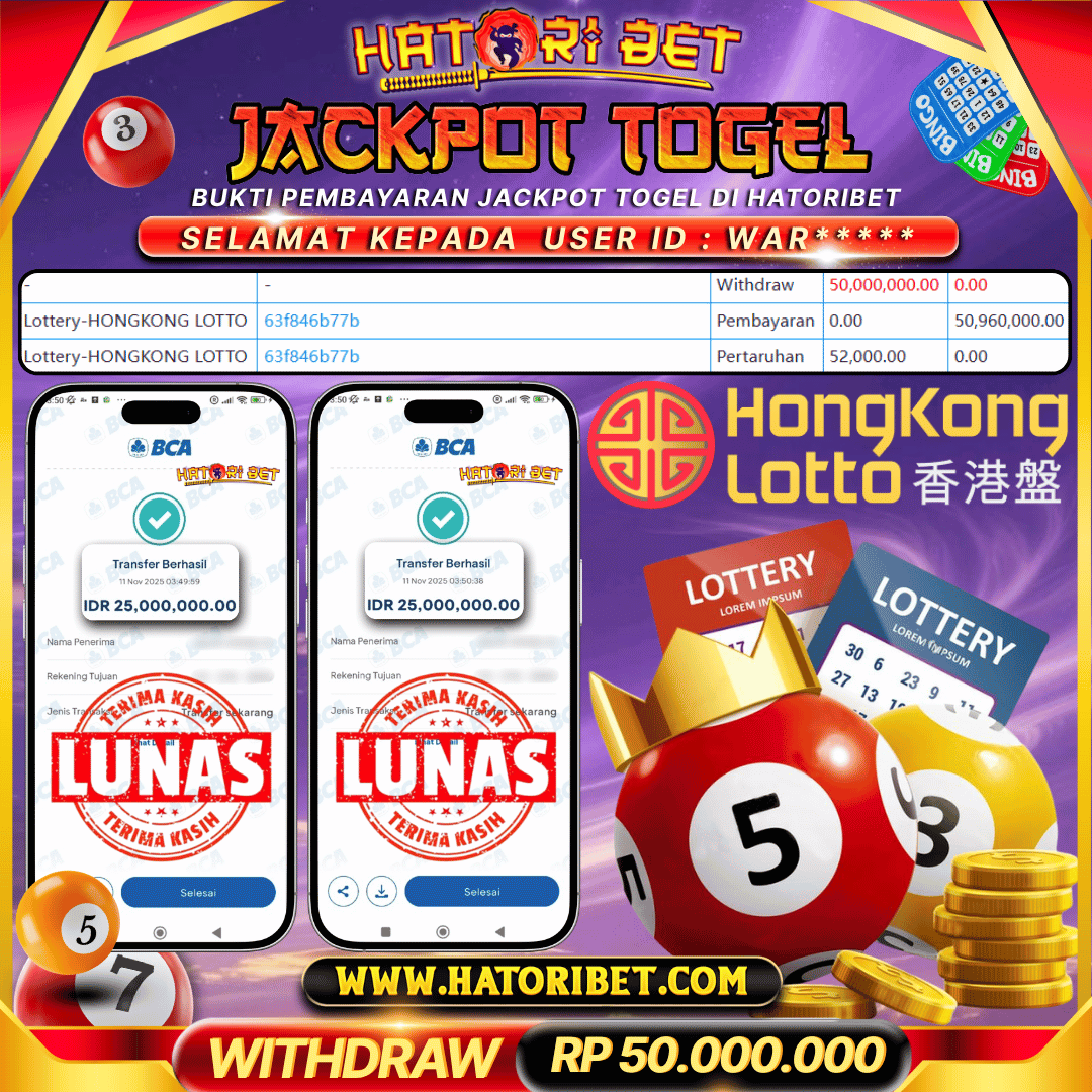 HATORIBET JACKPOT TOGEL HONGKONG RP 50,000,000 ,- LUNAS