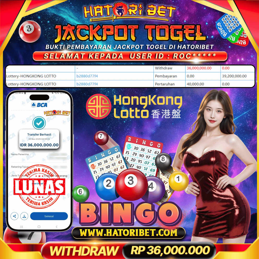 HATORIBET JACKPOT TOGEL HONGKONG RP 36,000,000 ,- LUNAS