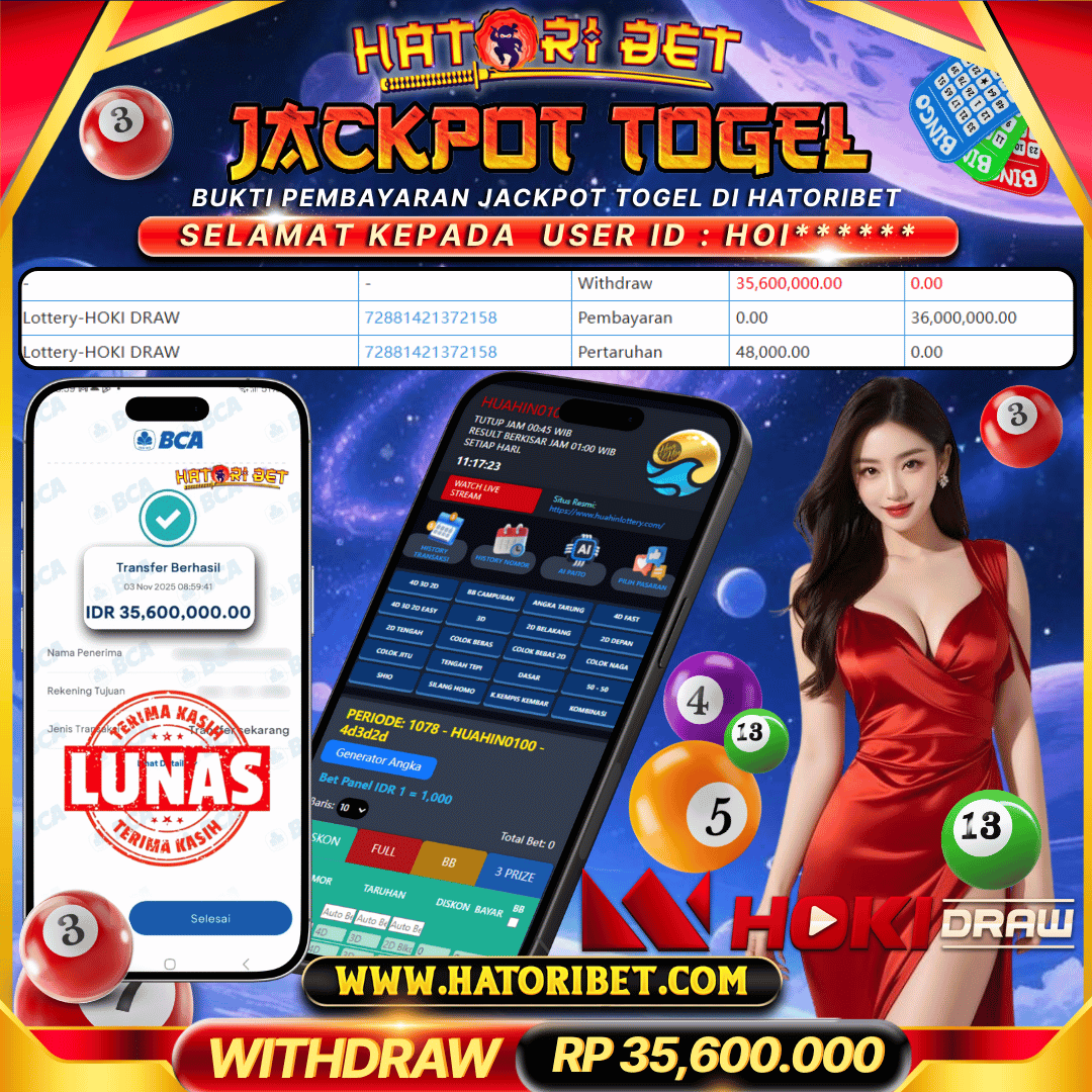 HATORIBET JACKPOT TOGEL HOKI DRAW RP 35,600,000 ,- LUNAS