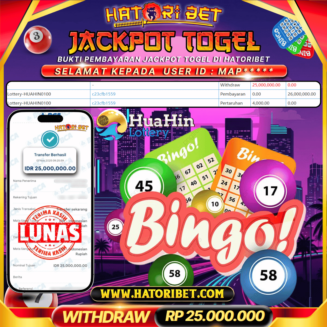 HATORIBET JACKPOT TOGEL HUAHIN RP 25,000,000 ,- LUNAS
