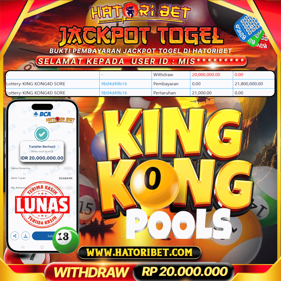 HATORIBET JACKPOT TOGEL KING KONG RP 20,000,000 ,- LUNAS