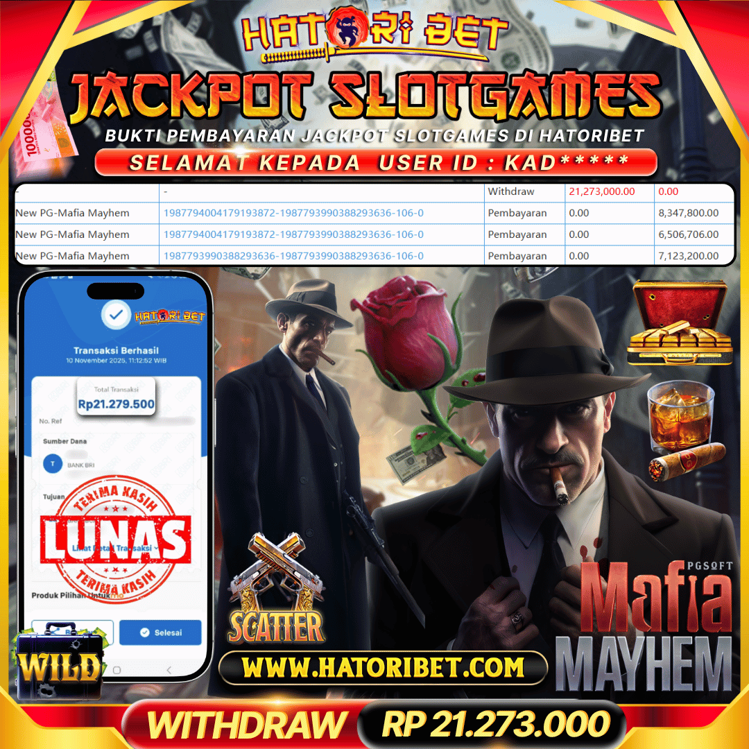 HATORIBET JACKPOT SLOTGAMES PG-MAFIA MAYHEM 21,273,000 ,- LUNAS