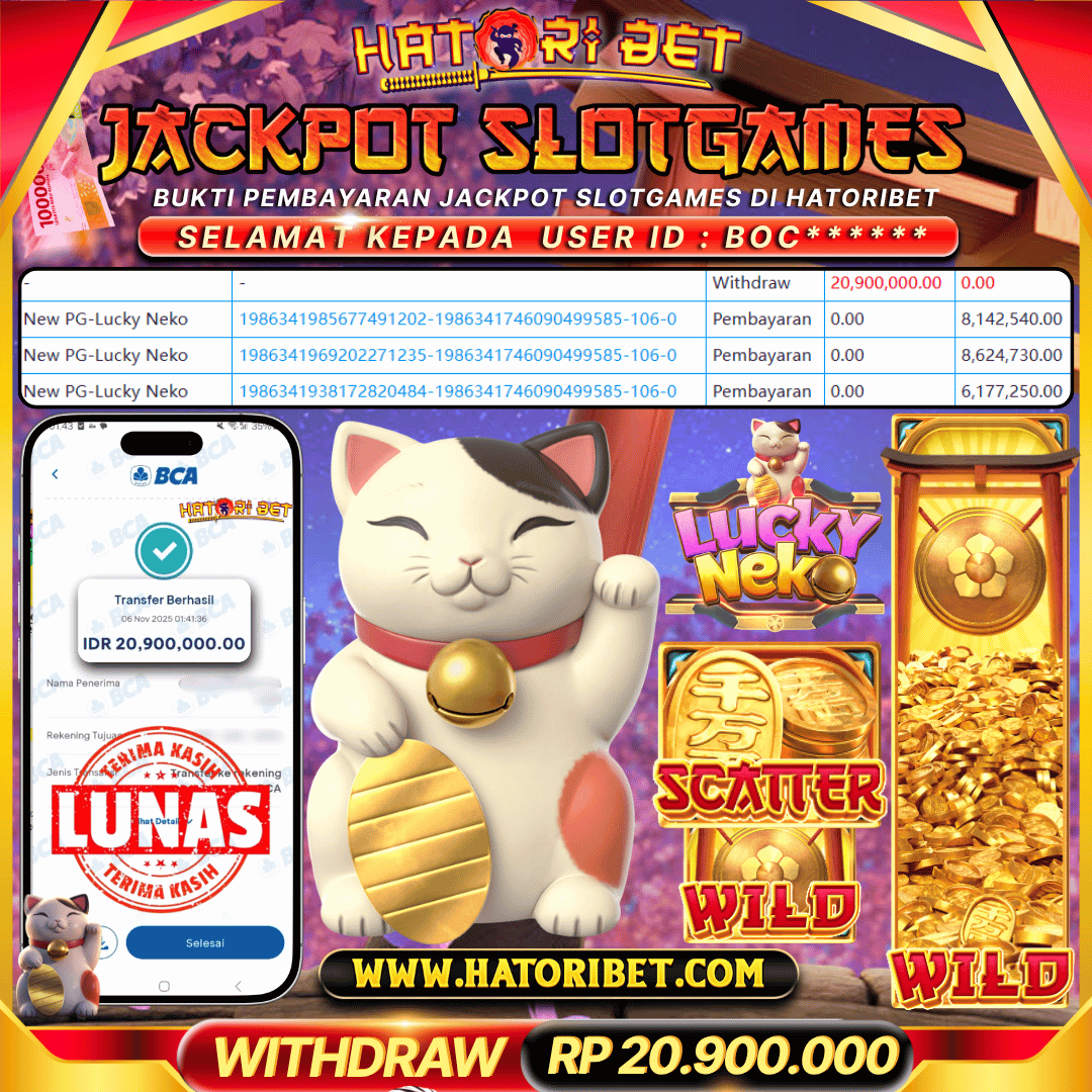 HATORIBET JACKPOT SLOTGAMES PG-LUCKY NEKO 20.900,000 ,- LUNAS