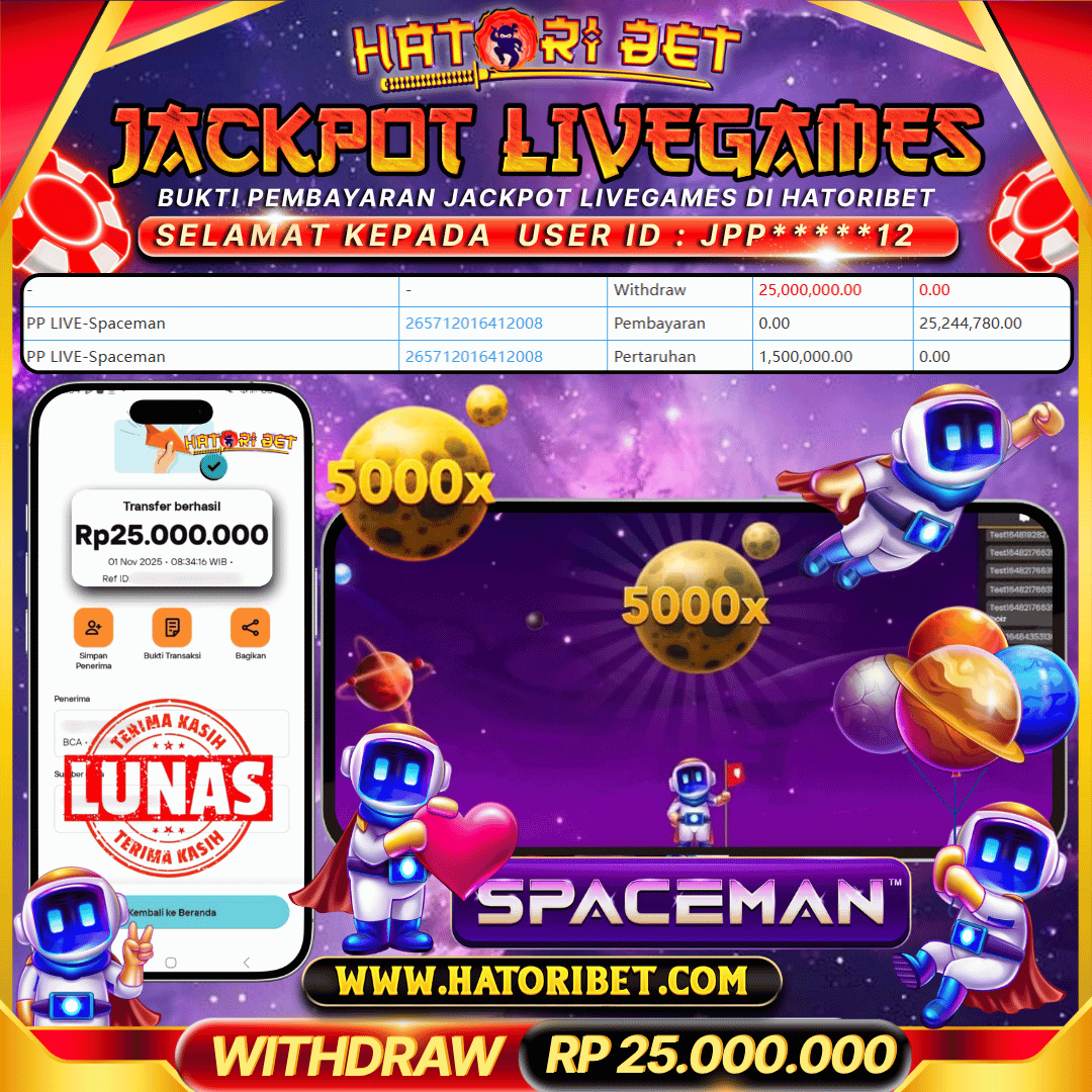HATORIBET JACKPOT LIVEGAMES PP LIVE-SPACEMAN RP 25,000,000 ,- LUNAS