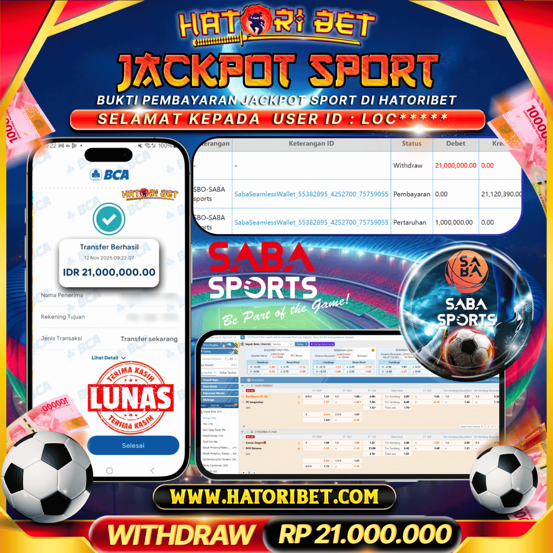 HATORIBET JACKPOT SPORT SABA RP 21,000,000 ,- LUNAS