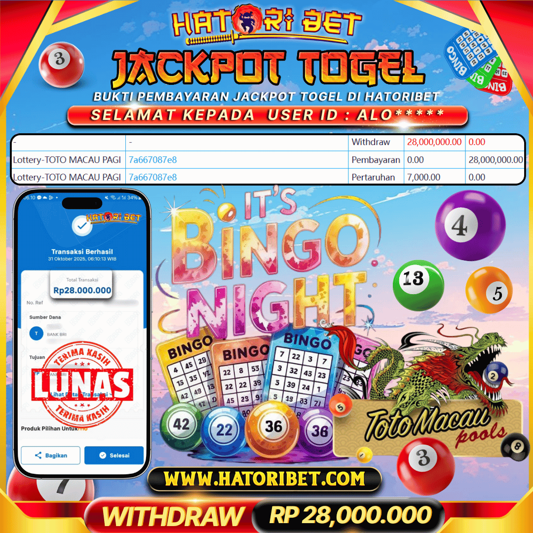 HATORIBET JACKPOT TOGEL TOTO MACAU RP 28,000,000 ,- LUNAS