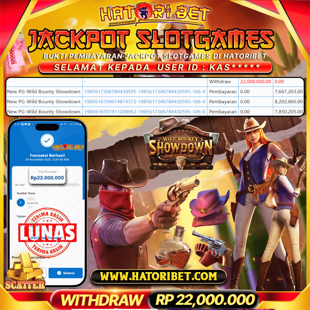 Selamat kepada UserId : KAS***** telah berhasil mendapatkan kemenangan besar pada permainan SLOTGAMES PG-WILD BOUNTY SHOWDOWN RP 22,000,000 , Setelah mengisi formulir withdraw dalam kurung waktu hanya 5 – 10 menit pihak HatoriBet sudah melakukan transfer kepada pemilik UserId dan dana sudah dapat di cairkan oleh pemenang. Bukti pembayaran yang kami berikan merupakan bukti pembayaran yang SAH / VALID yang langsung di dapatkan melaui tanda transfer transaksi dari Bank yang di tuju. Kami mengucapakan banyak Terima Kasih Kepada pemenang karena sudah mempercayakan kami sebagai Bandar terpercaya yang membayar semua kemenangan member hingga lunas. Masih ragu dengan HatoriBet? Di mana bandar slot dan togel online sekarang yang terpercaya seperti hatoribet ? Bandar yang mengirimkan kemenangan member tanpa bertele – tele. Jadi.... tidak perlu khawatir pada situs HATORIBET karena kemenangan berapapun akan dibayarkan hingga lunas kepada pemenang.
