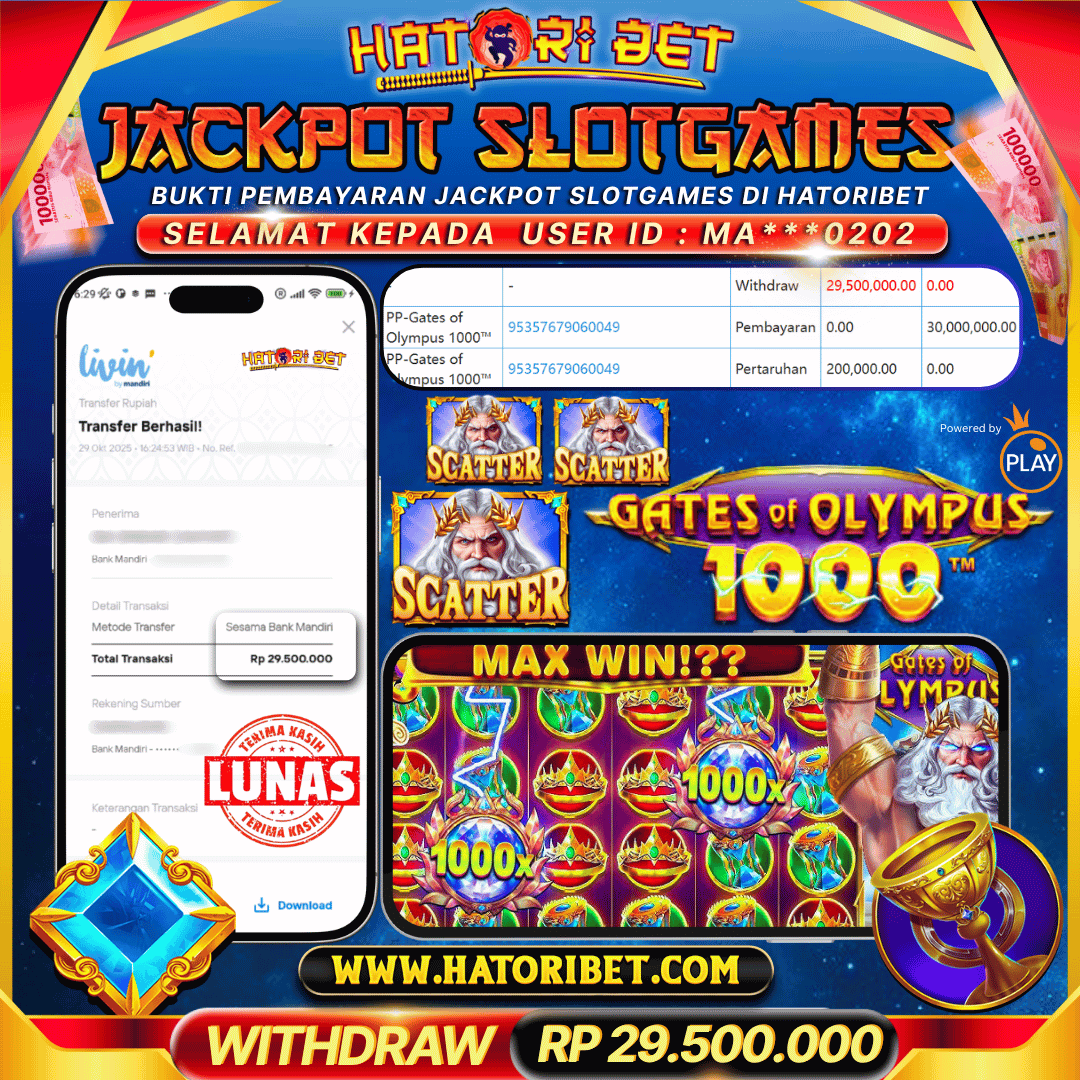 HATORIBET JACKPOT SLOTGAMES PP-GATES OF OLYMPUS 1000 29,500,000 ,- LUNAS
