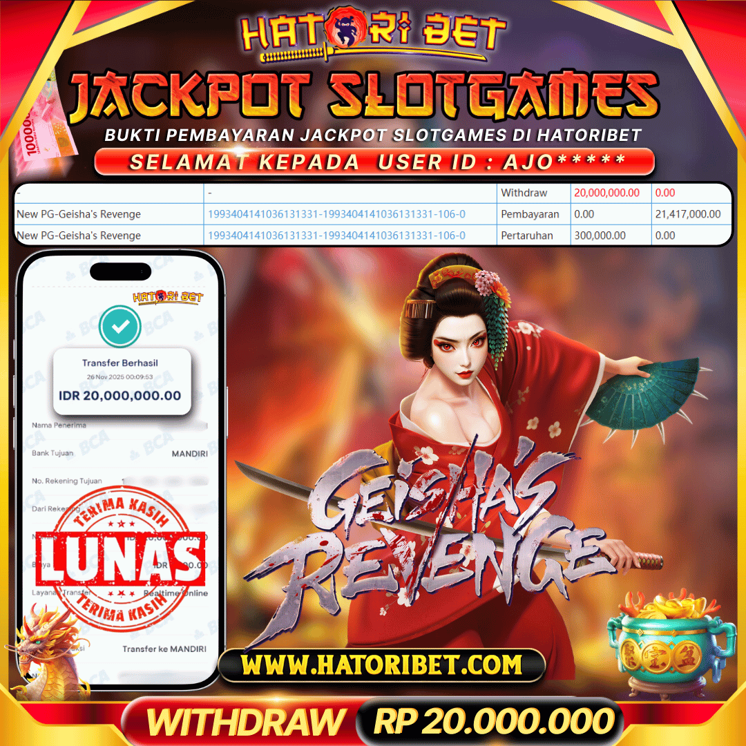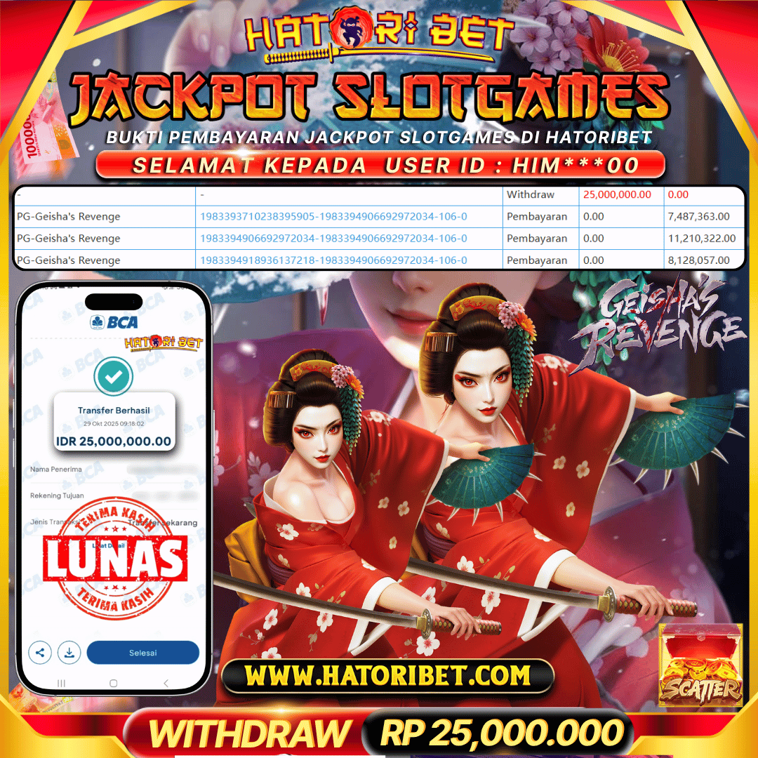 HATORIBET JACKPOT SLOTGAMES PG-GEISHA'S REVENGE 25,000,000 ,- LUNAS
